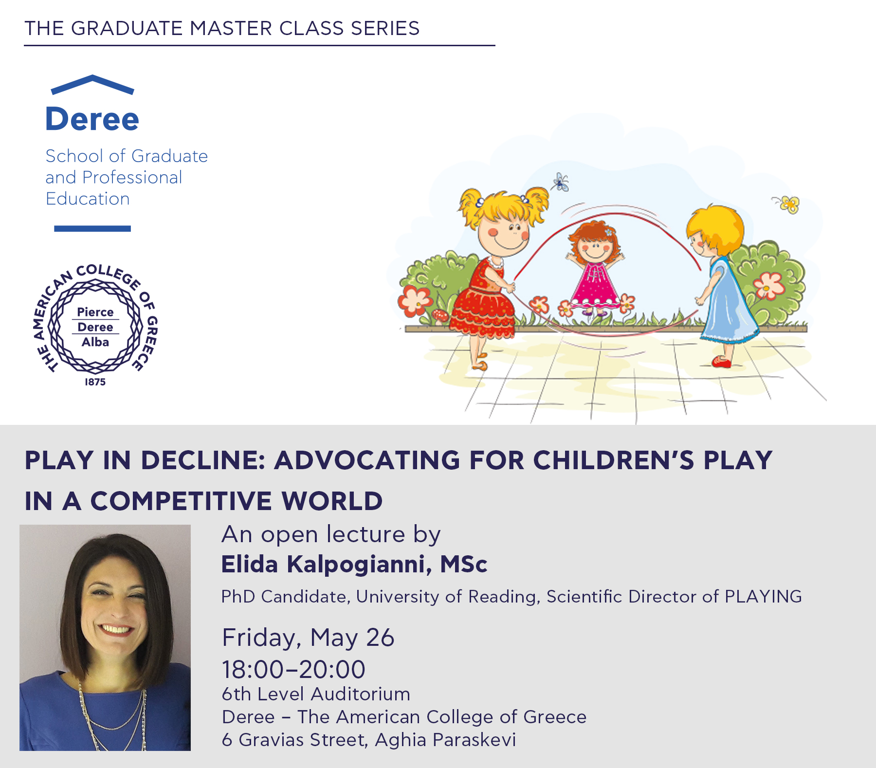 The lecture will discuss the main barriers to children’s play, such as lack of time and space, and dysfunctional adult perceptions around play. Issues such as the effect of different types of play on children’s development and learning will be discussed, as well as the importance of risk, and the ways that play affects children’s resilience and wellbeing. Ways to support play and play promotion materials, which are freely available, will be presented. The role of the educators and health professionals in children’s play promotion and advocacy will be emphasized.