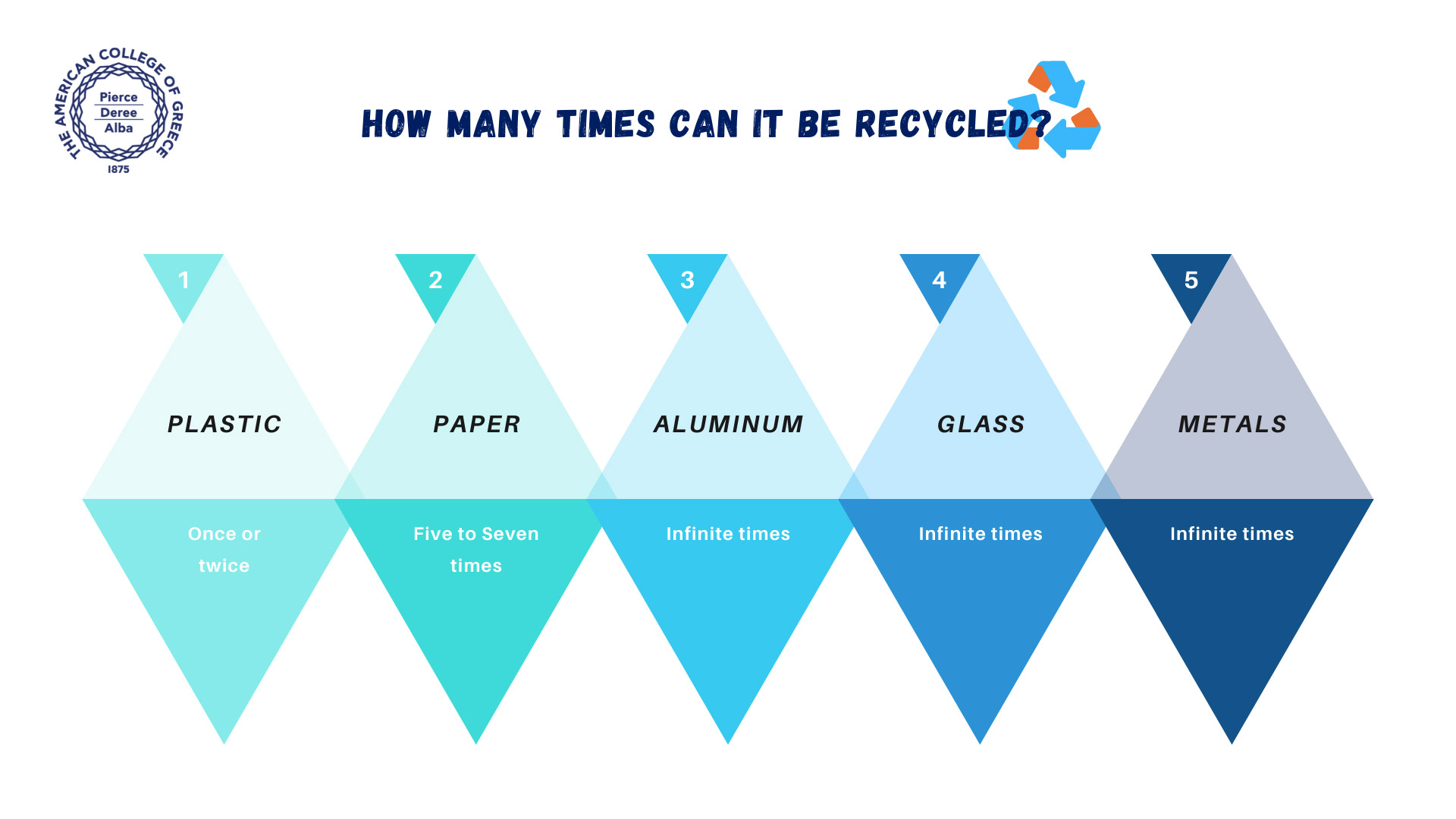 Recycling is the last resort. The only thing potentially keeping an item out of the landfill. Unfortunately, not all items are recyclable. And many of them can be recycled only a finite number of times, such as plastic or paper. Plastic, for example, is almost always is downcycled (which means turning it into a lower quality product than the original one) and it can only be recycled once or twice.