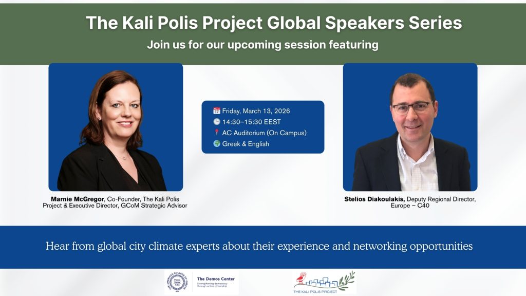 | 31 October | The Kali Polis Project, an urban studio internship program Created by Demos Center, supported by Global Covenant of Mayors for Climate and Energy |