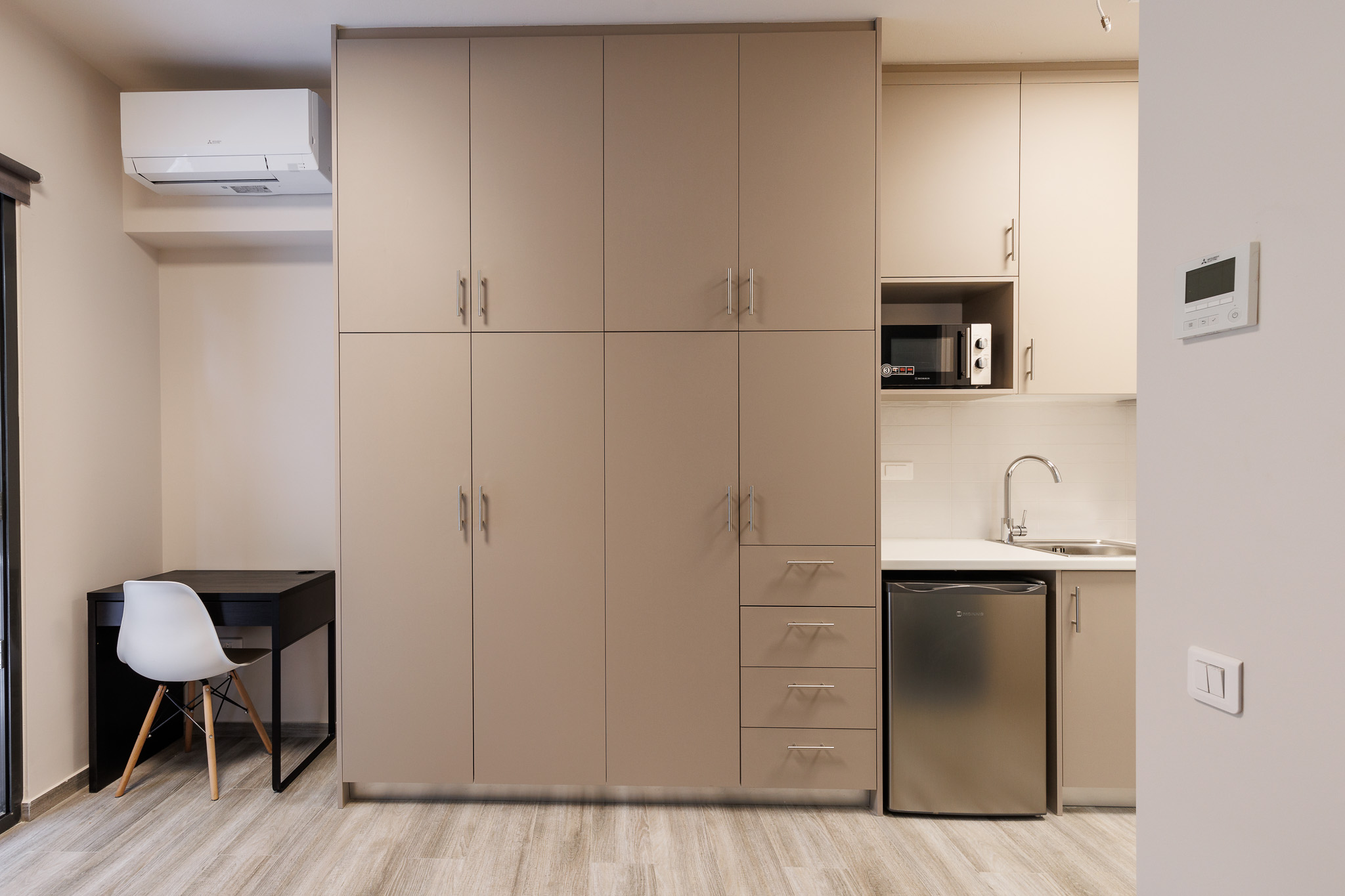 Private en-suite living with a compact kitchen area and a dedicated living space.
