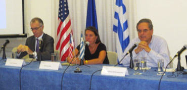 Prominent speakers participated in the two-day conference on "The European Financial Crisis and Developments in the East European Countries". Among them, Professor Vasilis Rapanos, Ms. Miranda Xafa, Professor Gikas Hardouvelis & the former Minister of Family and Population of Egypt Ms. Moushira Khattab. The conference was organized by the Institute of Diplomacy & Global Affairs @ the DEREE Graduate School and the European Alumni of the Woodrow Wilson Center.