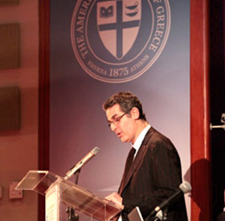 More than 700 wanted to see how Mark Mazower, this year's Kimon Friar lecturer, would tackle the topic "A New Age of Extremes? Historical Reflections on the Politics of the Present Crisis". Fortunately, even those who didn't find a seat in the packed PIERCE Theater, were able to follow the lecture online and even pose questions. The well known author, Professor of History at Columbia University and commentator on current affairs for major newspapers, was introduced by Dr. Haris Vlavianos, Professor of History and Political Science at DEREE, who also monitored the discussion that followed. Read more.
