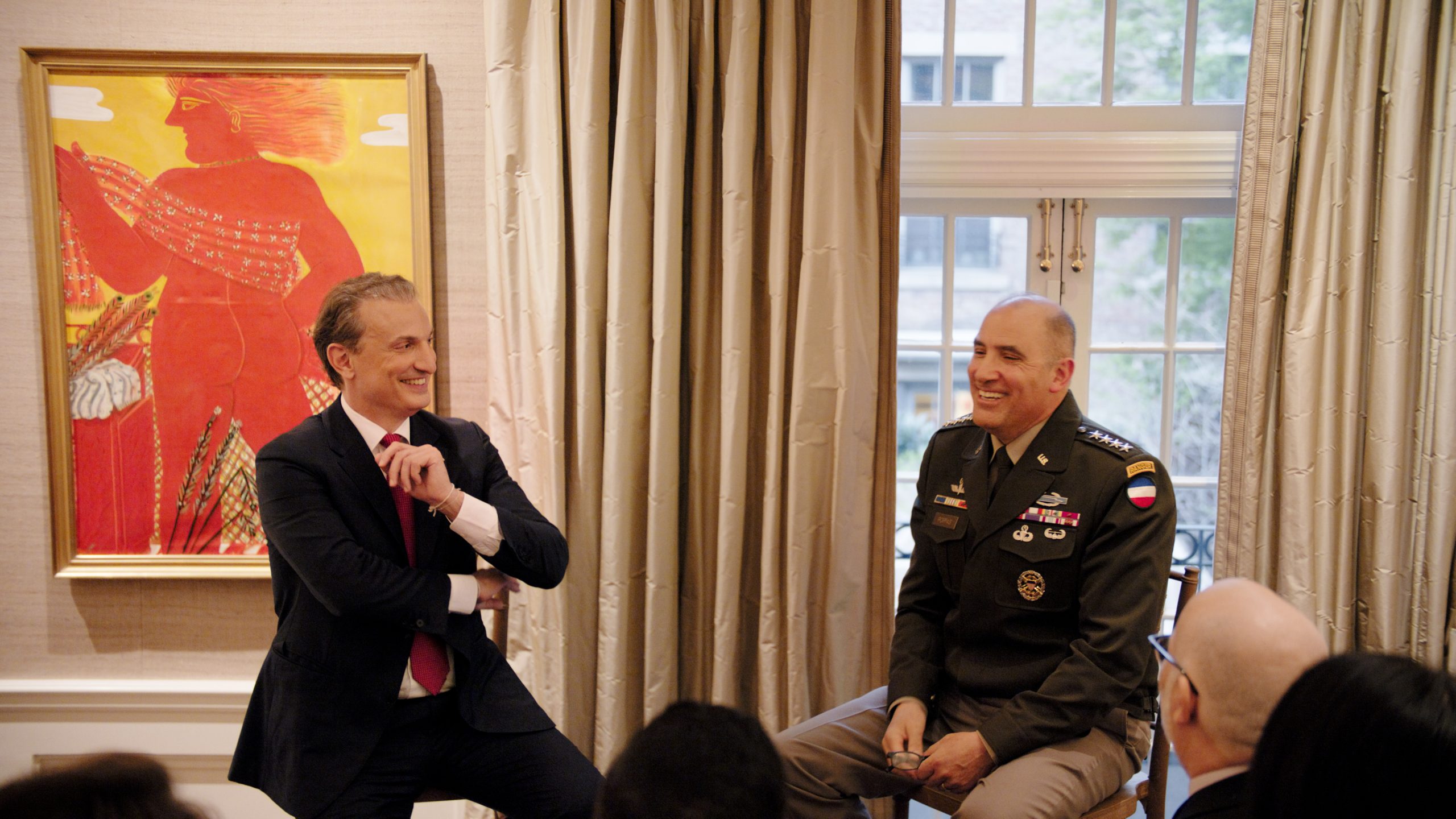 A “fireside chat” between Mr. Logothetis and surprise guest General Andrew P. Poppas, Commanding General, U.S. Army Forces Command, was the highlight of the evening. Mr. Logothetis introduced the four-star general as “the best combination of steel and empathy.” Through a frank conversation, the two sons of Greek immigrants explored themes of strong leadership, the importance of knowing history to chart the future, and how their Greek family ties and values have been integral to their success.