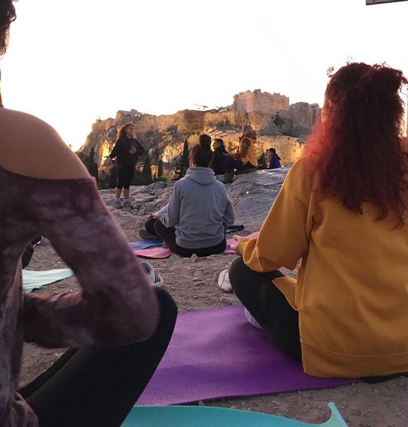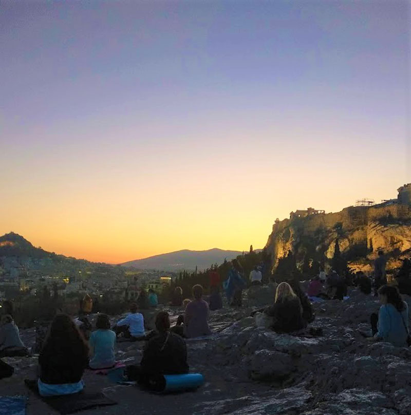 Meditation sessions are offered on a regular basis throughout the year. Sessions may focus on techniques such as Walking Meditation, Forest Meditation, Mindfulness, Meditation at your desk, Meditation for Peace, Sounion Sunset Meditation, Acropolis Sunrise Meditation, Knitting, kintsugi and other.
