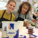 Students learn how to make healthy Greek appetizers: Greek Salad, Dakos, and Tzatziki.