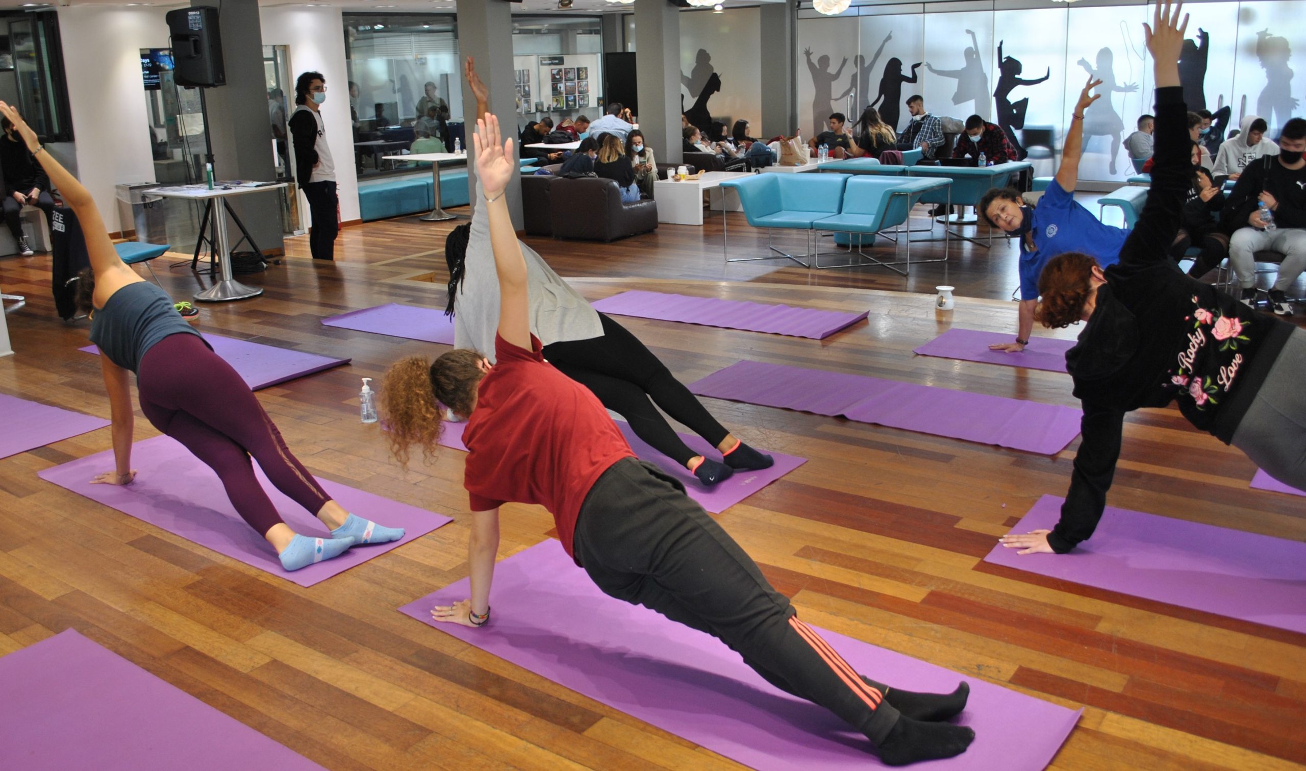Students, faculty and staff join the wellness coach twice a week in a 50 minute workout program that combines Pilates and Cardio. Pilates is a core workout that strengthens muscles and improves posture, balance and flexibility while Cardio is a workout that conditions the cardiovascular system. These two types of exercise in combination work together to help achieve overall fitness and health.
