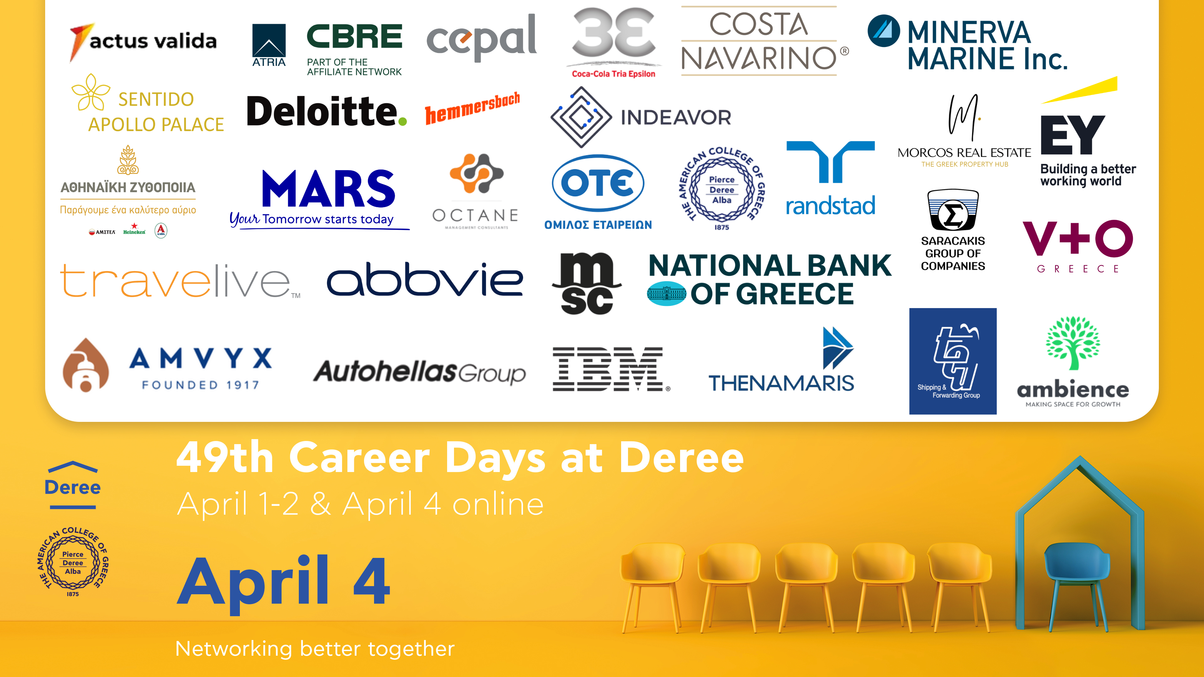 Join our 49th Career Days at Deree and find your match among industry representatives and promising students.