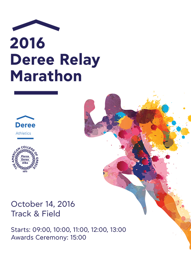 October, 2016 2016 Deree Relay Marathon ACG Track & Field 201614Oct09:002016 Deree Relay Marathon09:00 Event DetailsWhen: Friday, October 14, 2016, 9:00 Where: ACG Track & Field Organized by: Office of Athletics Event Details When: Friday, October 14, 2016, 9:00 Where: ACG Track & Field Organized by: Office of Athletics