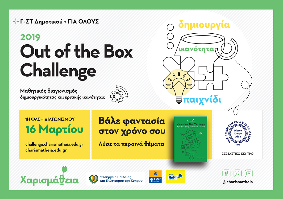 Student competition on creativity & critical thinking When: Saturday, March 16, 2019 Where: The American College of Greece (examination center) The competition is addressed to all Γ’ to ΣΤ’ primary school students or
