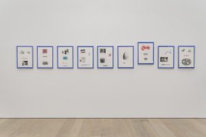 The exhibition borrows the display cases of the College’s library to showcase archival material from the ACG collection relating to the artists and works on show; as well as some new works, such as texts by Georges Perec or even drafts from the collaboration of ceramist Panos Valsamakis with the Hellenic Telecommunications Organisation (OTE) for the decoration of a central Athens branch facade in the 60s, a unique case of employing one of the world’s most ancient techniques in order to give material substance to the intangibility of telecommunication technology.