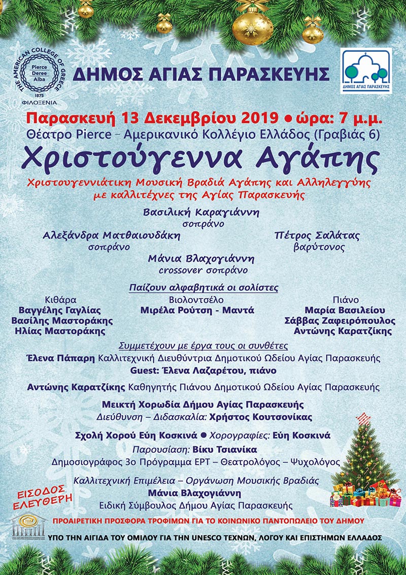 A Christmas celebration full of music, love and solidarity with artists from Aghia Paraskevi