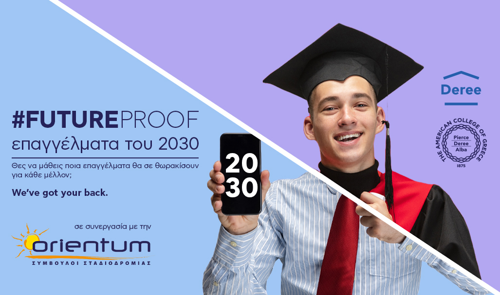 Δήλωσε σήμερα συμμετοχή στην εκδήλωση του Deree #Futureproof επαγγέλματα του 2030 στις 6 Δεκεμβρίου και ενημερώσου για τις επιλογές και τους συνδυασμούς σπουδών που θα σε βοηθήσουν να χτίσεις το μέλλον σου όπως εσύ το θέλεις!