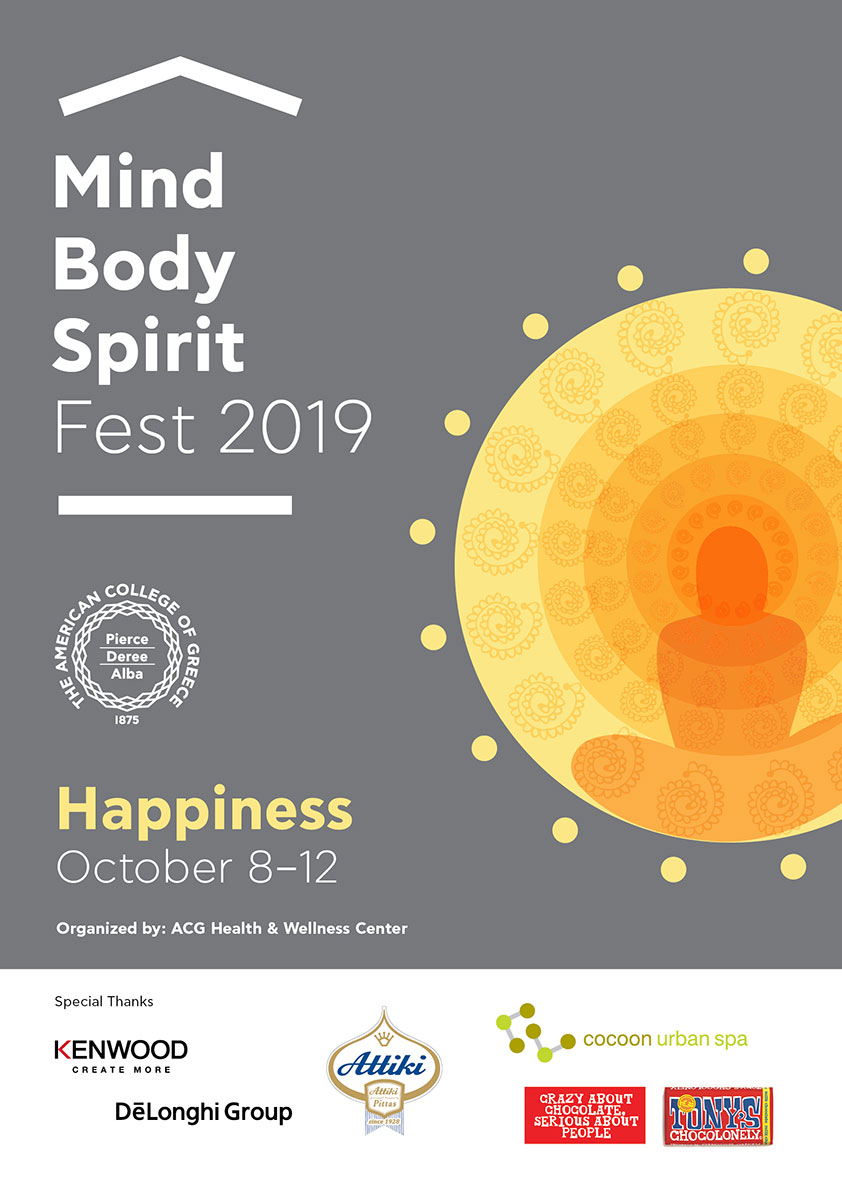 October, 2019 Mind Body Spirit Fest 2019 201908OctAll Day12Mind Body Spirit Fest 2019(All Day) Event DetailsWhen: October 8-12 Where: Deree – The American College of Greece Organized by: ACG Health and Wellness Center Find the program here. Meet the Speakers Event Details When: October 8-12 Where: Deree – The American College of Greece Organized by: ACG Health and Wellness Center Find the program here. Meet the Speakers