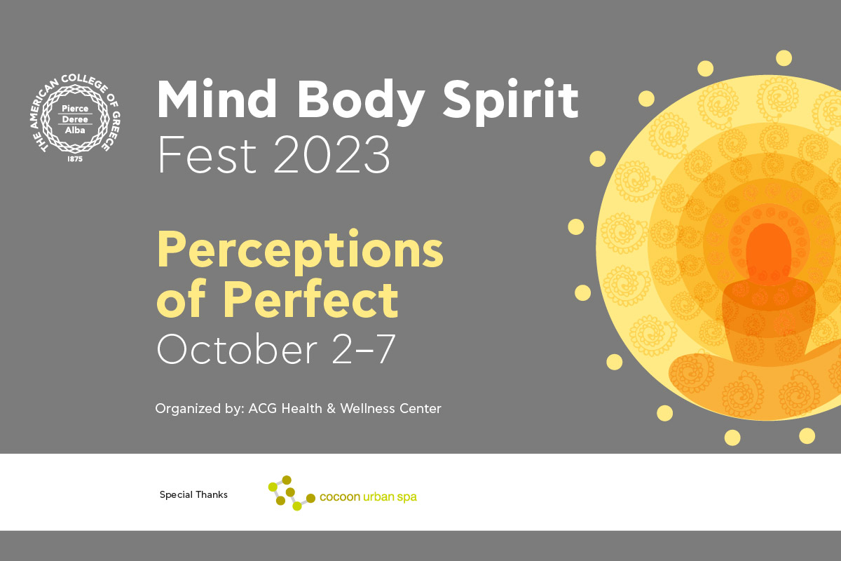 When: October 2-7, 2023 Where: Center for the Arts Auditorium, Studio 3 / Deree Gym, Events Hall, Student Lounge, Acropolis Metro Station–Meditation site: “Vrahakia” Organized by: ACG Health and Wellness Center Join us for