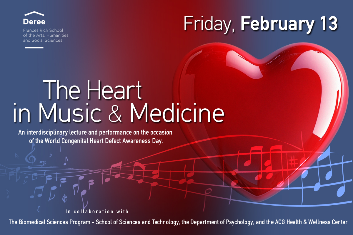The Heart in Music and Medicine When: Friday, February 13, 2026 | 13:30 – 15:30 Where: ACG Events Hall, DC, Ag. Paraskevi Campus Organized by: Dr Tatiana Papageorgiou, Associate Professor, Deree Music Department, The