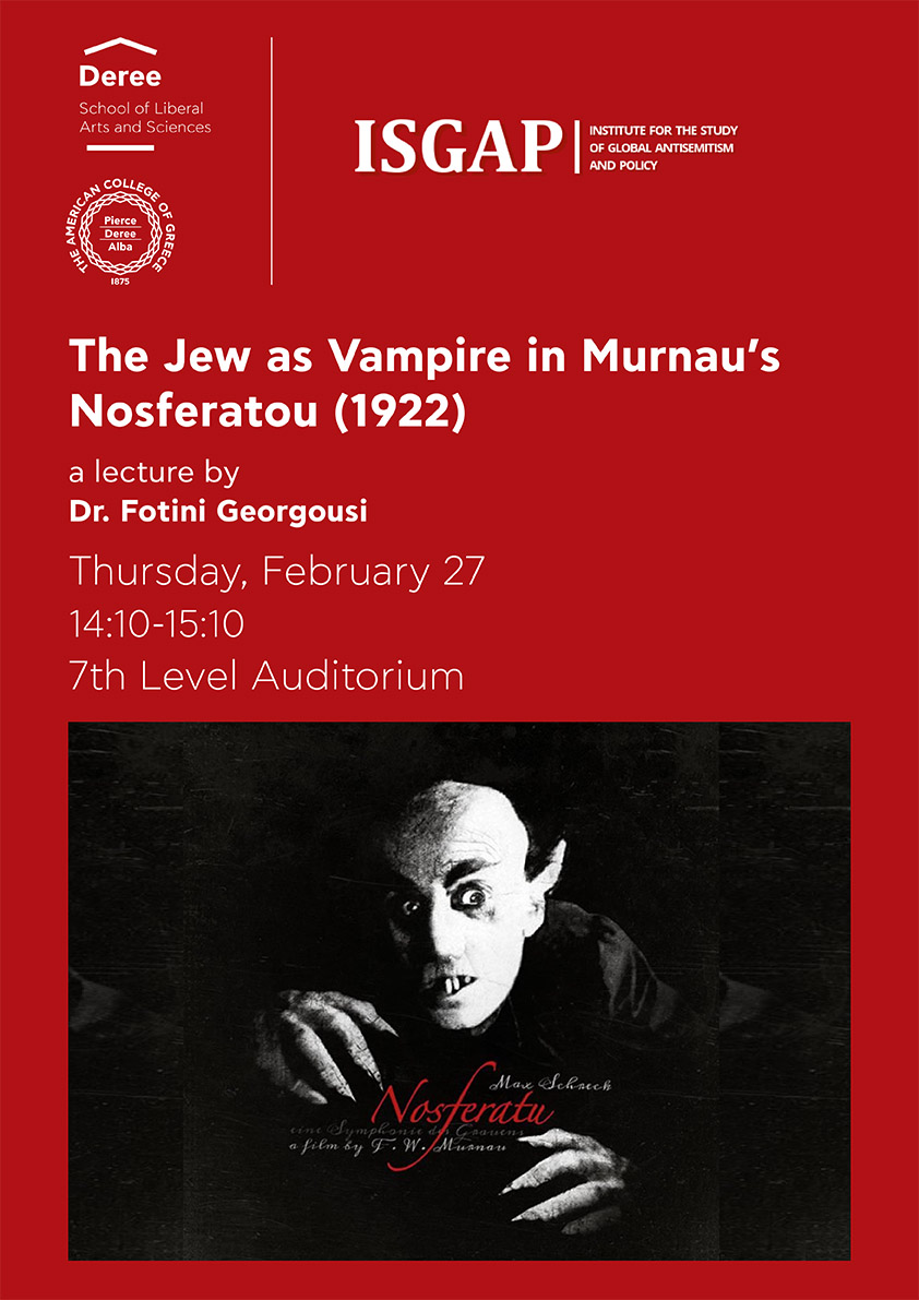 The Jew as Vampire in Murnau’s Nosferatou (1922) a lecture by Dr. Fotini Georgousi