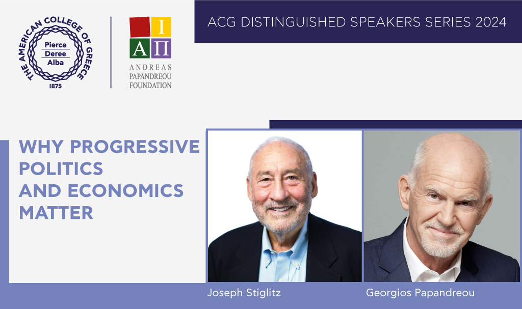 The ACG Distinguished Speakers Series 2024 presents Joseph Stiglitz, Economist, Columbia University professor and Nobel Prize winner in Economic Sciences (2001), in an interactive discussion on the topic of “Why Progressive Politics and Economics Matter”, with Georgios Papandreou, Greece’s Prime Minister (2009-2011), moderated by Apostolos Mangiriadis, Anchorman of the Hellenic Broadcasting Corporation (ERT).
