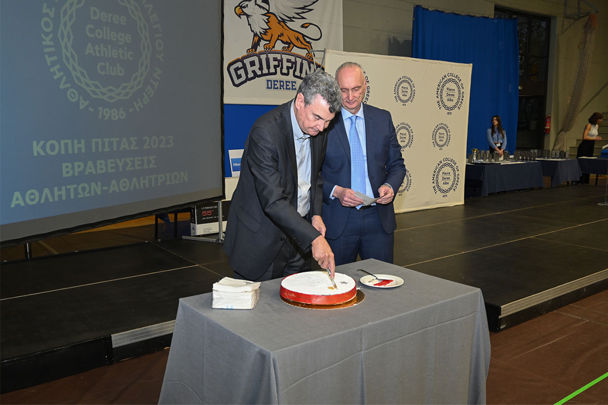 On January 28, young athletes and their families gathered for the 2023 Deree College Athletic Club (DCAC) pita-cutting ceremony. There was a huge turnout, and the event was honored by the presence of ACG President David G. Horner and members of the College administration.