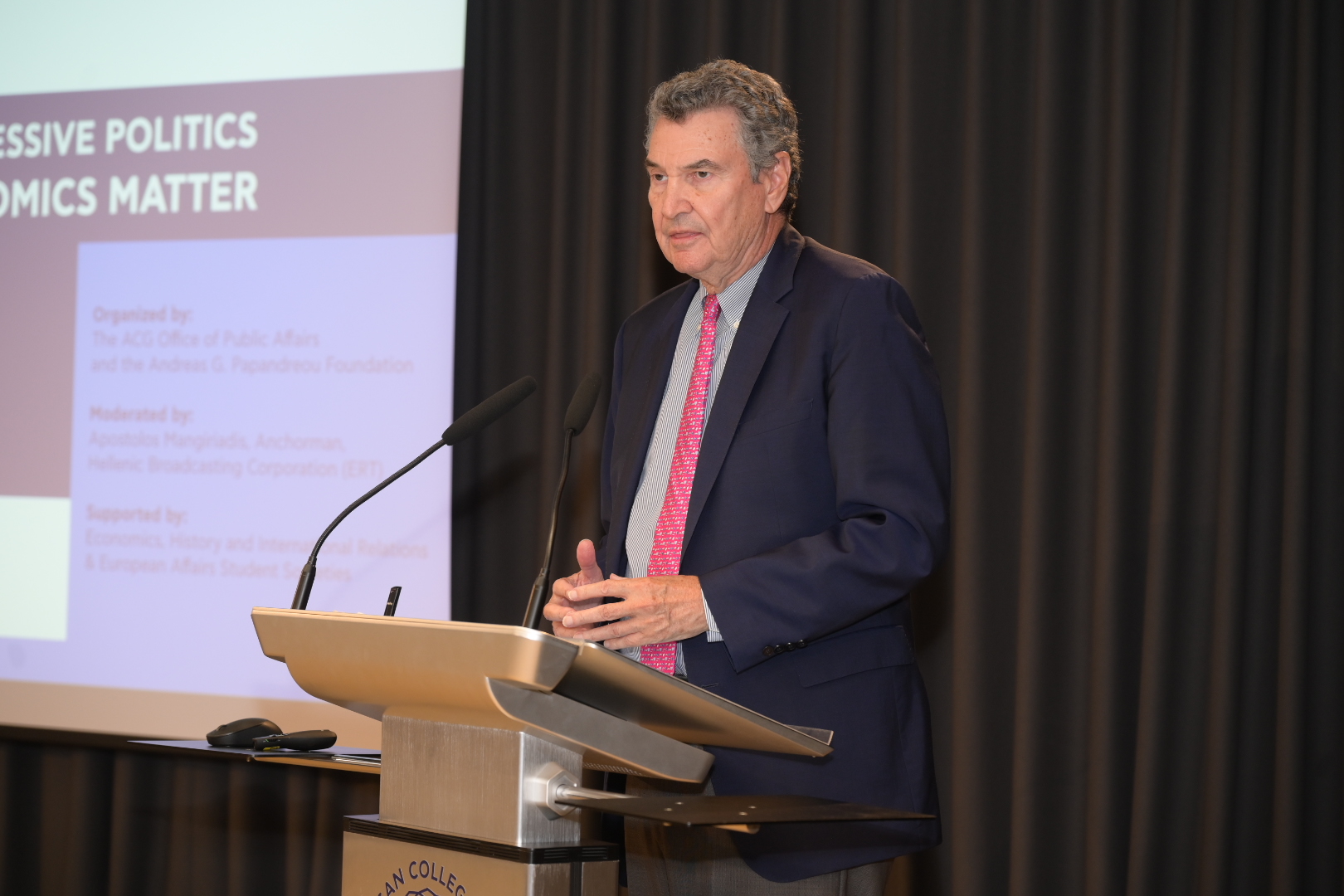 On Wednesday, October 16, ACG was honored to host Columbia University professor and Nobel Prize-winning economist Joseph Stiglitz and former Greek Prime Minister Georgios Papandreou, two influential figures whose insights and expertise illuminate the intersection of economics and politics, as our featured speakers at the 2024 Distinguished Speakers Series. The ACG Events Hall served as a backdrop for this event, bringing together students, faculty, staff, alumni and community leaders. Organized by the ACG Office of Public Affairs in partnership with the Andreas G. Papandreou Foundation, this event was supported by the Deree student Economics, History, International Relations, and European Affairs societies.