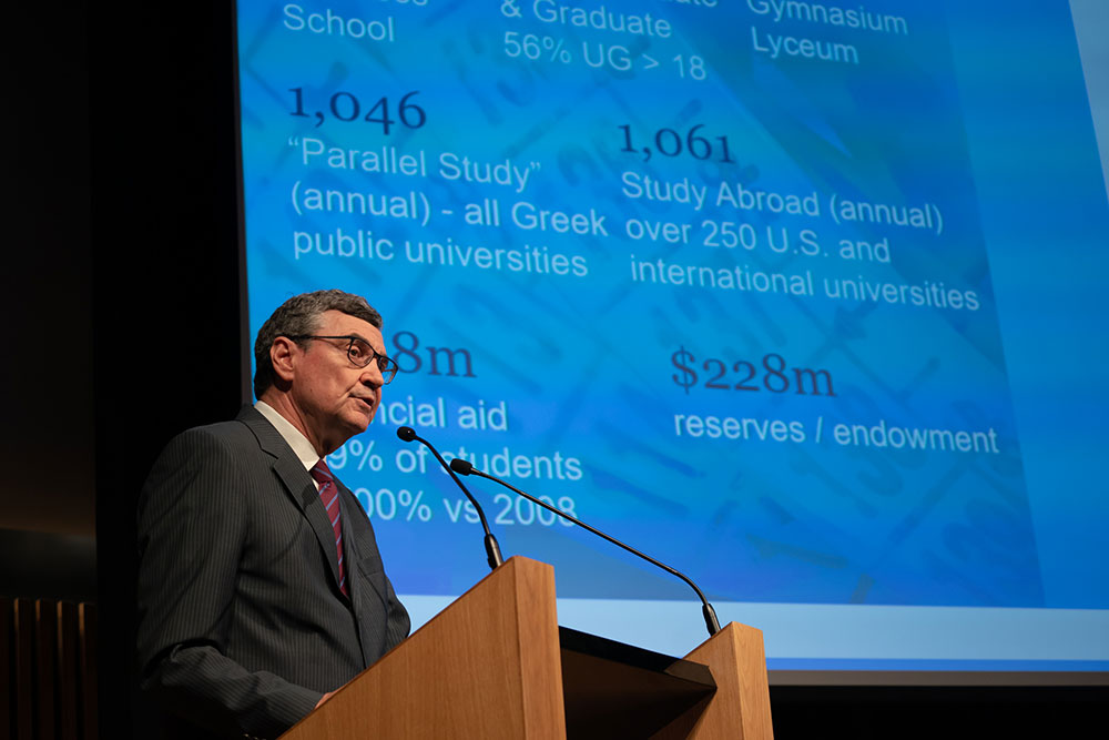 On November 20, ACG organized a unique event with distinguished guests, representatives from the business, academic and political world. The purpose of the event was to start a public conversation on the importance of the connection between the Academic and the Business world. President David G. Horner announced ACG’s plan to add distinctive and sustainable value to society and the economy through education, in his introductory speech at the new modern art museum B&E Goulandris Foundation, in the heart of downtown Athens.
