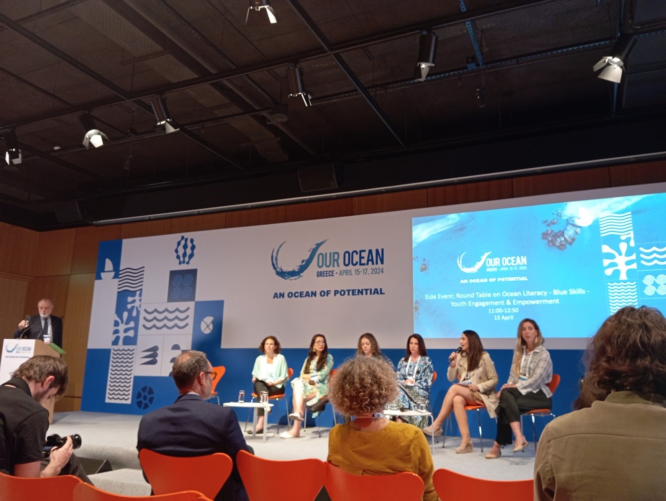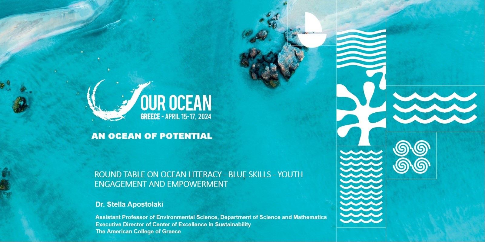 Dr. Stella Apostolaki, Assistant Professor, Environmental Studies Program, Department of Science and Mathematics at Deree – ACG and Executive Director of the CoES, participated in the Side Event titled “Round Table: Ocean Literacy – Blue Skills – Youth Engagement and Empowerment.” During this session, Dr. Apostolaki presented views on the role of education and research in efforts to protect the oceans, as well as the importance of public marine literacy, which is enriched by scientific findings and knowledge. The round table discussion was facilitated by Professor Michael Scoullos, Chair of MIO-ECSDE, UNESCO Chair & Network on Sustainable Development Management and Education in the Mediterranean at the University of Athens, and member of the external Advisory Board of the CoES.