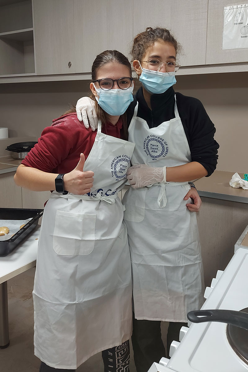 Pierce Gymnasium and Lyceum students with their professors, Deree students from the ACG Sustainability Leaders student organization and the Psychology Society, a representative from the Pierce Parents Association and ACG staff participated in the ‘sweetest’ initiative, organized by the Office of Public Affairs, at the Pierce Home Economics professional kitchen. Together they baked 592 cookies and muffins and packaged them in 165 individual, festive, parcels for people in need!
