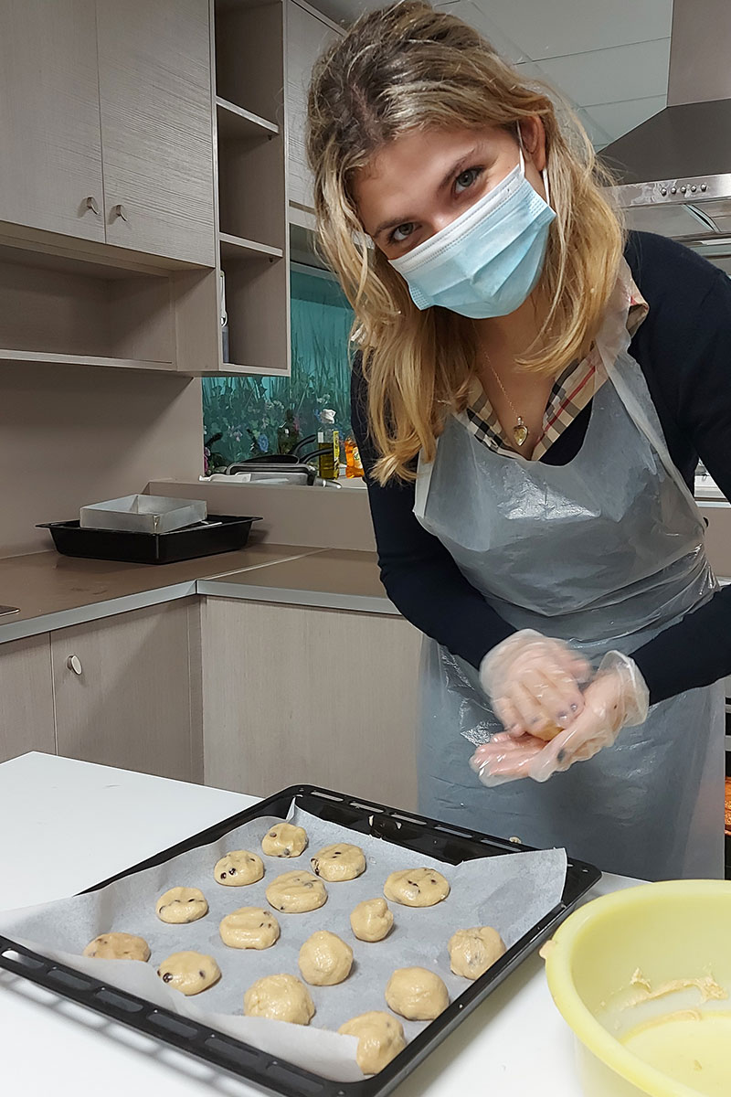 Speaking of the welcoming and friendly atmosphere Pierce Gymnasium student Irida Gkrekou describes her experience. “Each one of us worked in groups and baked delicious cookies and muffins! There was a strong teamwork spirit, because we all helped each other, when making the mix, baking it, or even placing the cookies in trays. This was such a comforting and fun initiative and I would do it again!”