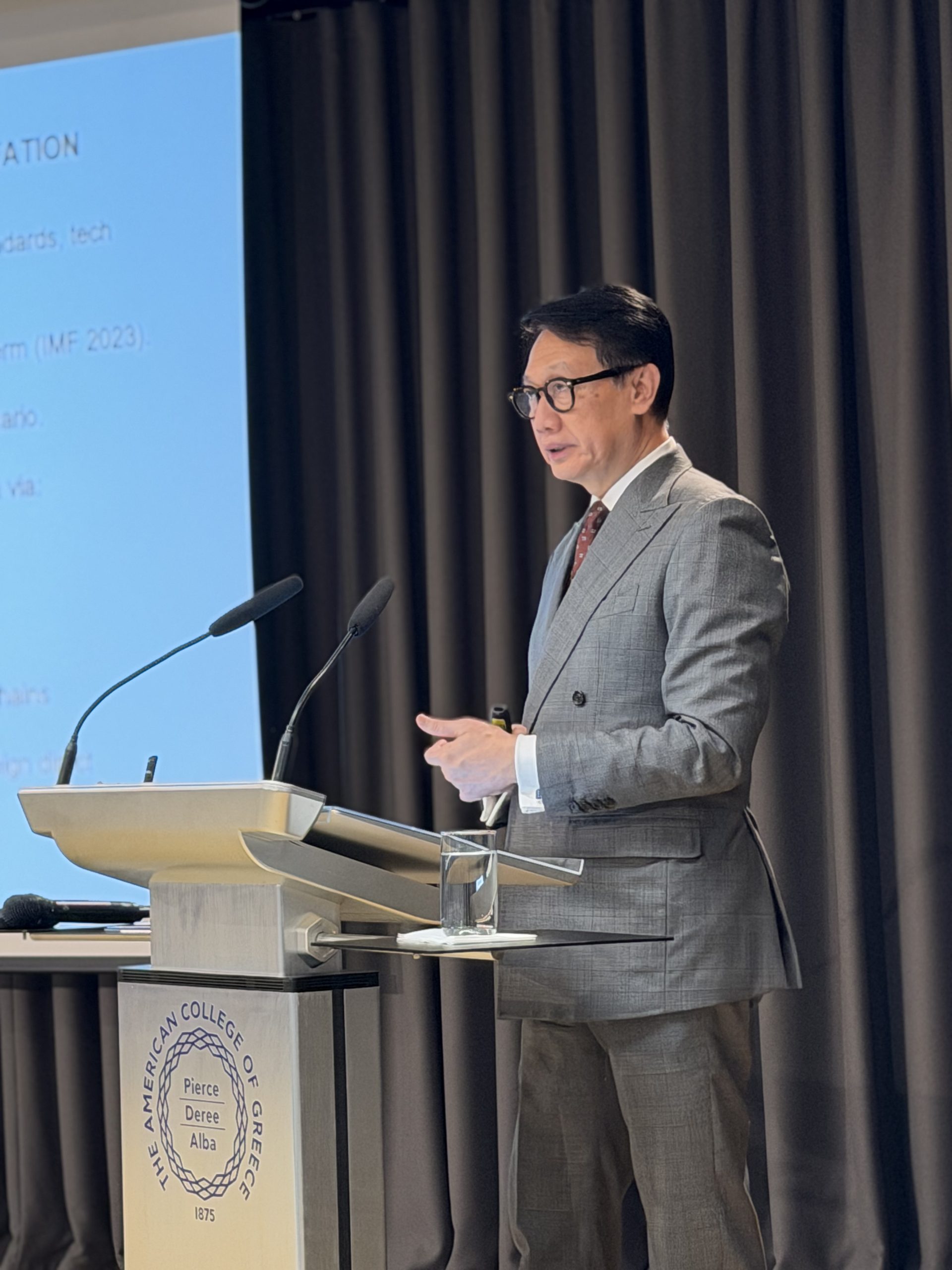 The session was moderated by Dr. Konstantinos Filis, Director of ACG’s Institute of Global Affairs and Deree Professor of International Relations & European Affairs. In his opening remarks, Dr. Filis noted that in a period of geopolitical fragility, middle powers such as Indonesia play a significant role in shaping regional and global dynamics, operating within complex regional systems, safeguarding strategic autonomy, and shaping outcomes through calibrated engagement. Drawing a parallel with Greece as a maritime nation, he underscored how geography informs national strategy and highlighted the scope for cooperation between Southeast Asia and Europe.