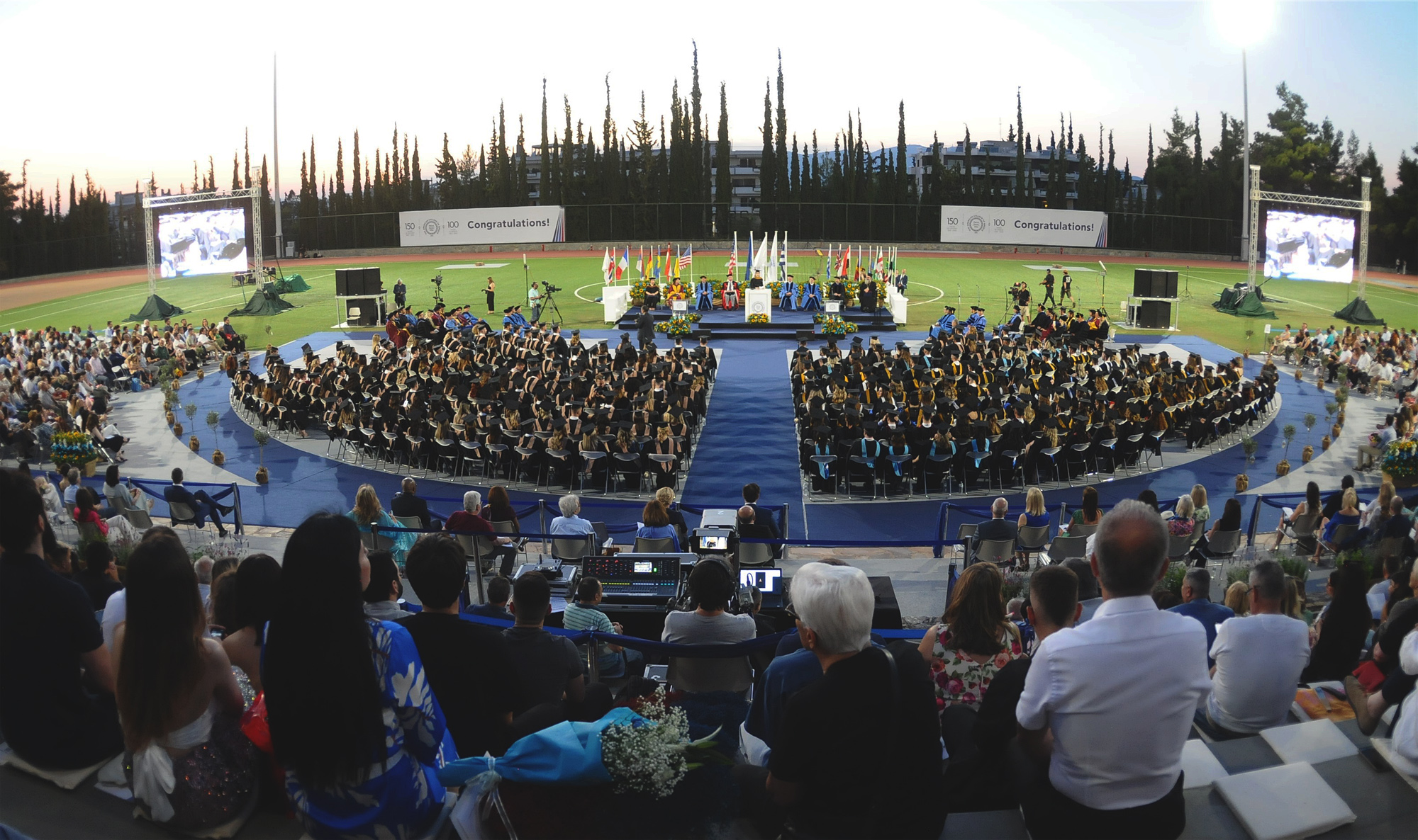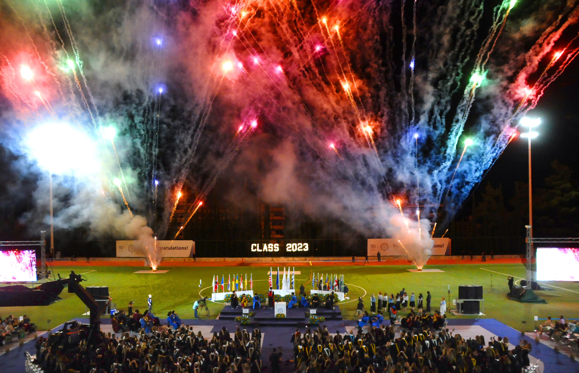 The 2023 Alba and Deree Graduate Commencement Ceremony, held on Friday, June 23, was a joyful event and held great significance as it marked a year of firsts. The first “first” is that graduating students from Alba Graduate Business School and the Deree School of Graduate and Professional Education came together for our first commencement dedicated exclusively to the College’s graduate programs. The second “first” is that students graduating from the College’s graduating programs will be the first graduates to receive their degrees from The American University of Greece for academic work completed at The American College of Greece in the Alba Graduate Business School and the Deree School of Graduate and Professional Education. The third “first” is that the commencement ceremony was held at the ACG stadium, allowing us to accommodate a larger audience and celebrate our graduates’ achievements with friends, family and the ACG community.