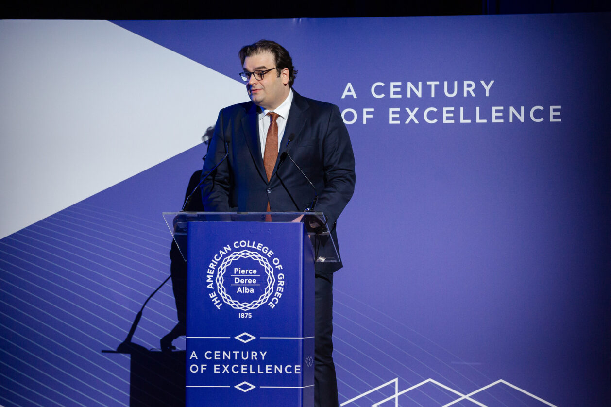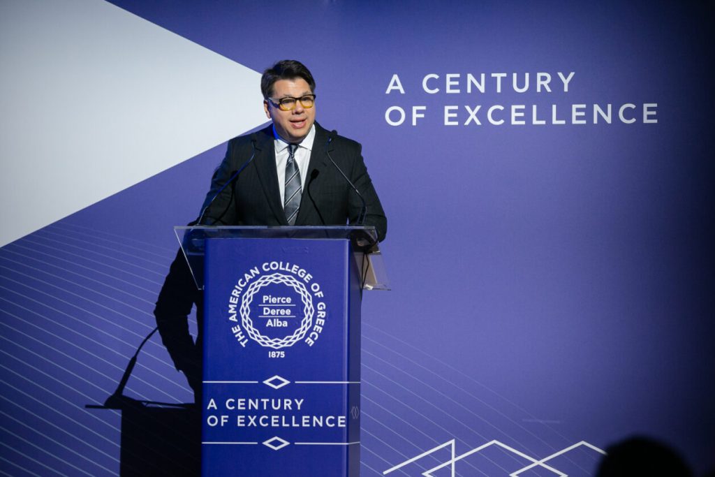 President David G. Horner opened the gala and reflected on that time, 100 years ago, when “the school was utterly destroyed by a fire that engulfed the surrounding city. What must they [the school’s faculty and staff] have thought? What must they have left? Leaving Smyrna behind and beginning again in another country, in Greece, here in Athens? What courage, what faith, what indomitable spirit! This is the story we celebrate tonight – the story of this school and the country, Greece, that adopted it. A story of perseverance, of passionate pursuit of excellence, “Not to be served, but to serve!”