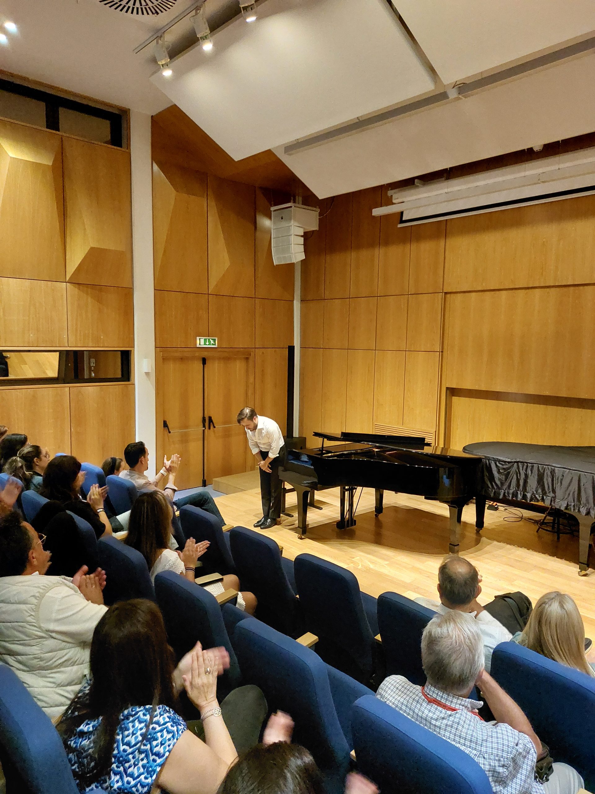 Following the guest lecture, the Hellenic Amateur Astronomy Union treated attendees to two impressive astrophotography presentations. The indoor portion of the evening was brought to a conclusion with a piano performance by the talented pianist and ACG alumnus Nick Venner, who amazed the audience with compositions by Jean–Philippe Rameau, Frederick Chopin and Sergei Rachmaninov.