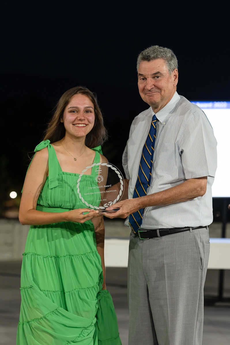 President David G. Horner presented the awards of College Life Leadership and Deree Spirit, awarded to seniors who excelled in leadership and exemplify the spirit of Deree as a dedicated member of the ACG community.