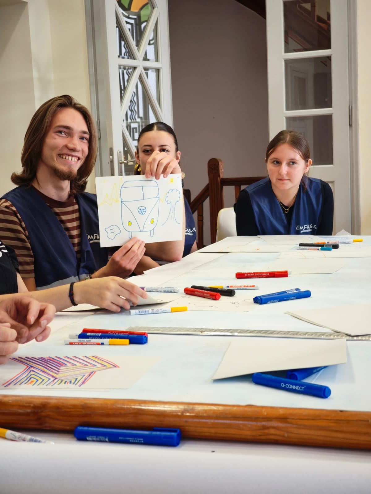 Through discussions and artistic collaboration, participants not only gained a deeper insight into the issues surrounding homelessness but also practiced sharing space by visualizing how their differing ideas about shelter can coexist. The artwork was created on a reused banner, symbolically reinforcing the value of sustainability and transformation.