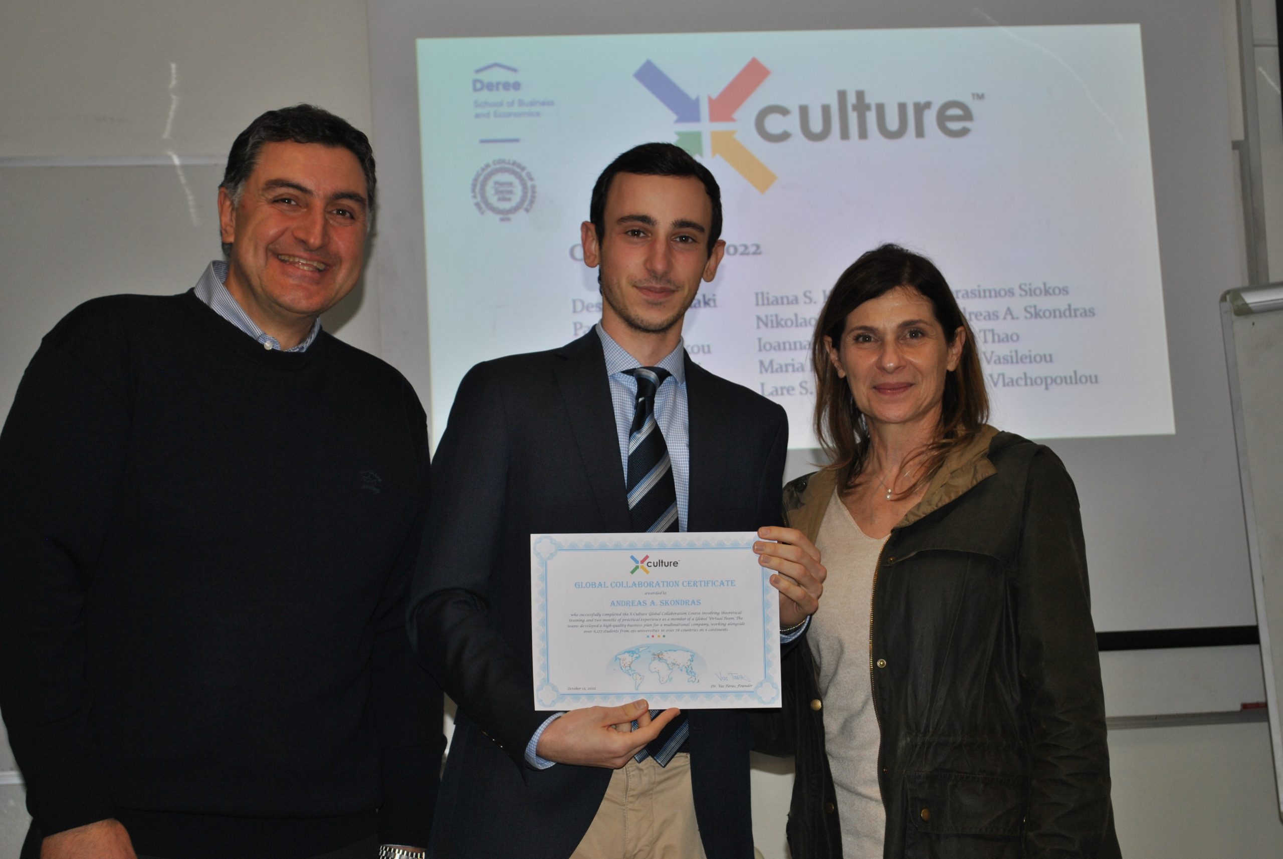 Deree-The American College of Greece and the School of Business and Economics participated in the X-Culture project for the first time in the fall 2022 semester through the course IB 4168 Cross-Cultural Management, offered by the Management and International Business Department and taught by Dr. Antonis Klidas, Head of the Management and International Business department. According to X-Culture, this was the first-ever participation from Greece! Participation in X-Culture was supported financially by the School of Business and Economics.