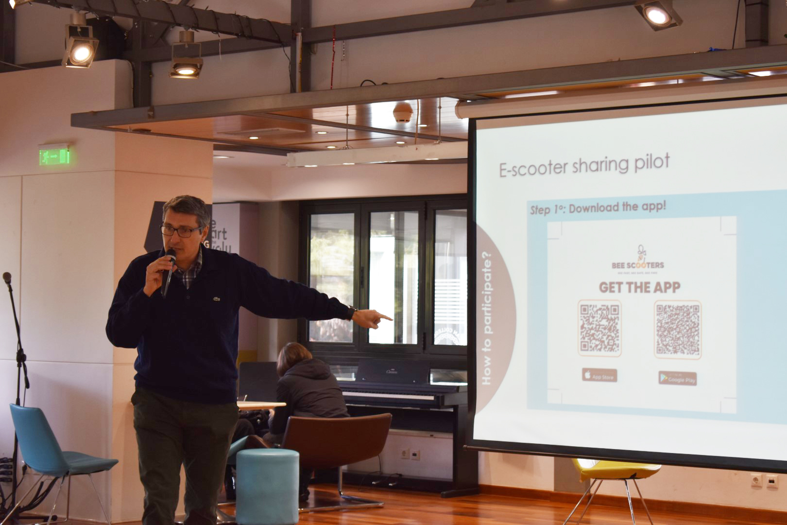 Dr. Amalia Polydoropoulou and Mrs. Panagiota Mavrogenidou from the University of the Aegean, alongside Dr. Georgios Kokosalakis, Assistant Professor at Deree and Executive Director of the ACG CoELST, presented the project to an engaged audience. With a fleet of ten electric scooters provided by Bee Scooters, the pilot program kicked off in February, offering participants an opportunity to register, ride, and provide feedback through a brief questionnaire.