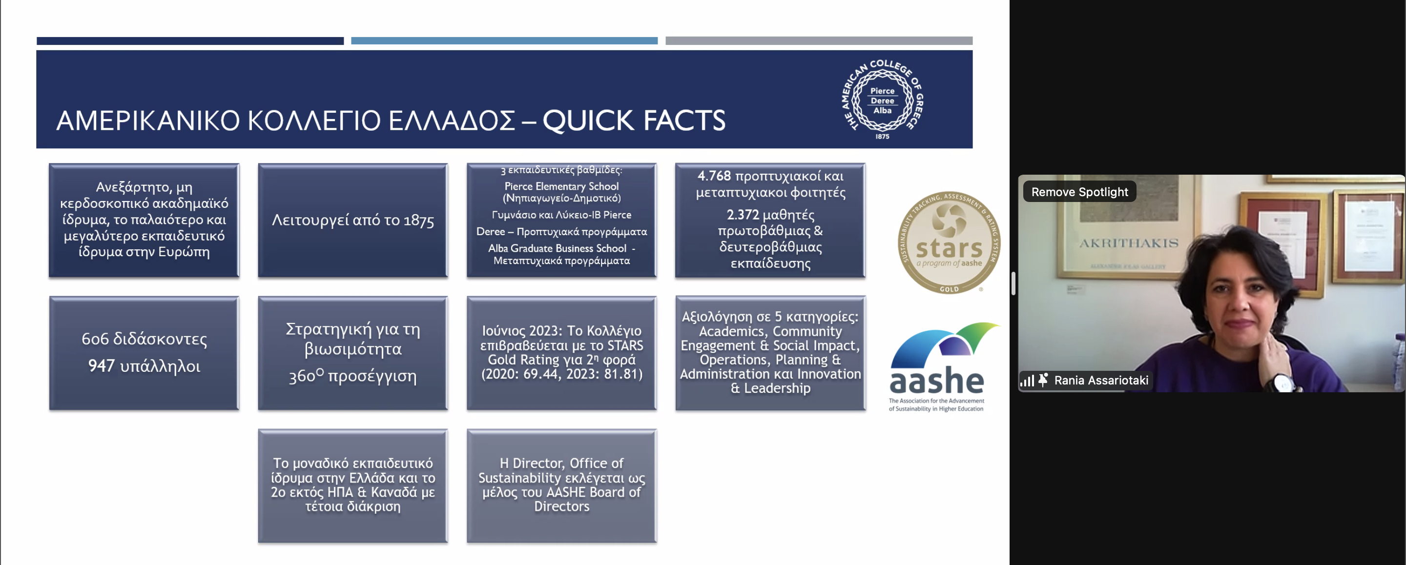 Educators, school students and parents had the opportunity to explore the practices and initiatives by getting to know the case study of how The American College of Greece promotes sustainability. They were all encouraged to engage with entrepreneurship while strategically placing environmental protection and sustainability at the core of their projects.
