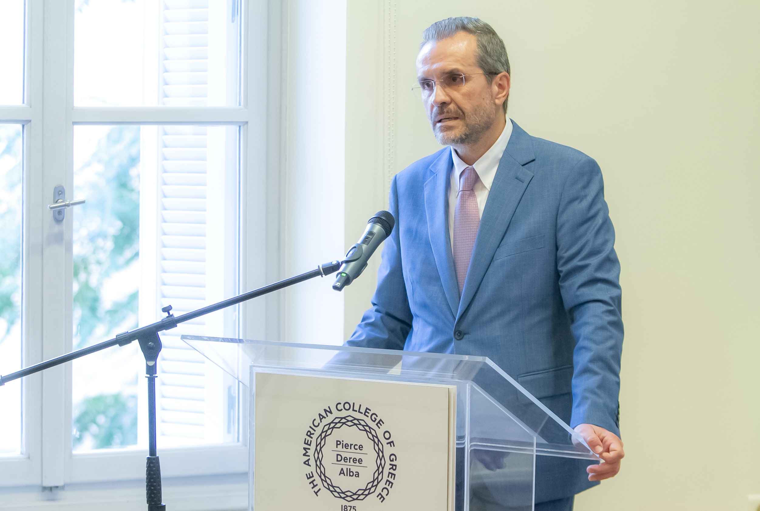 Claudia Carydis, Vice President of Public Affairs at ACG, and Professor Kostas Axarloglou, Dean of Alba, opened the event, setting the stage for a thought-provoking discussion led by Dr. Pavlos Vlachos, Associate Dean of Research & Innovation at Alba and holder of the Theodoros Papalexopoulos Chair in Corporate Social Responsibility and Sustainability.