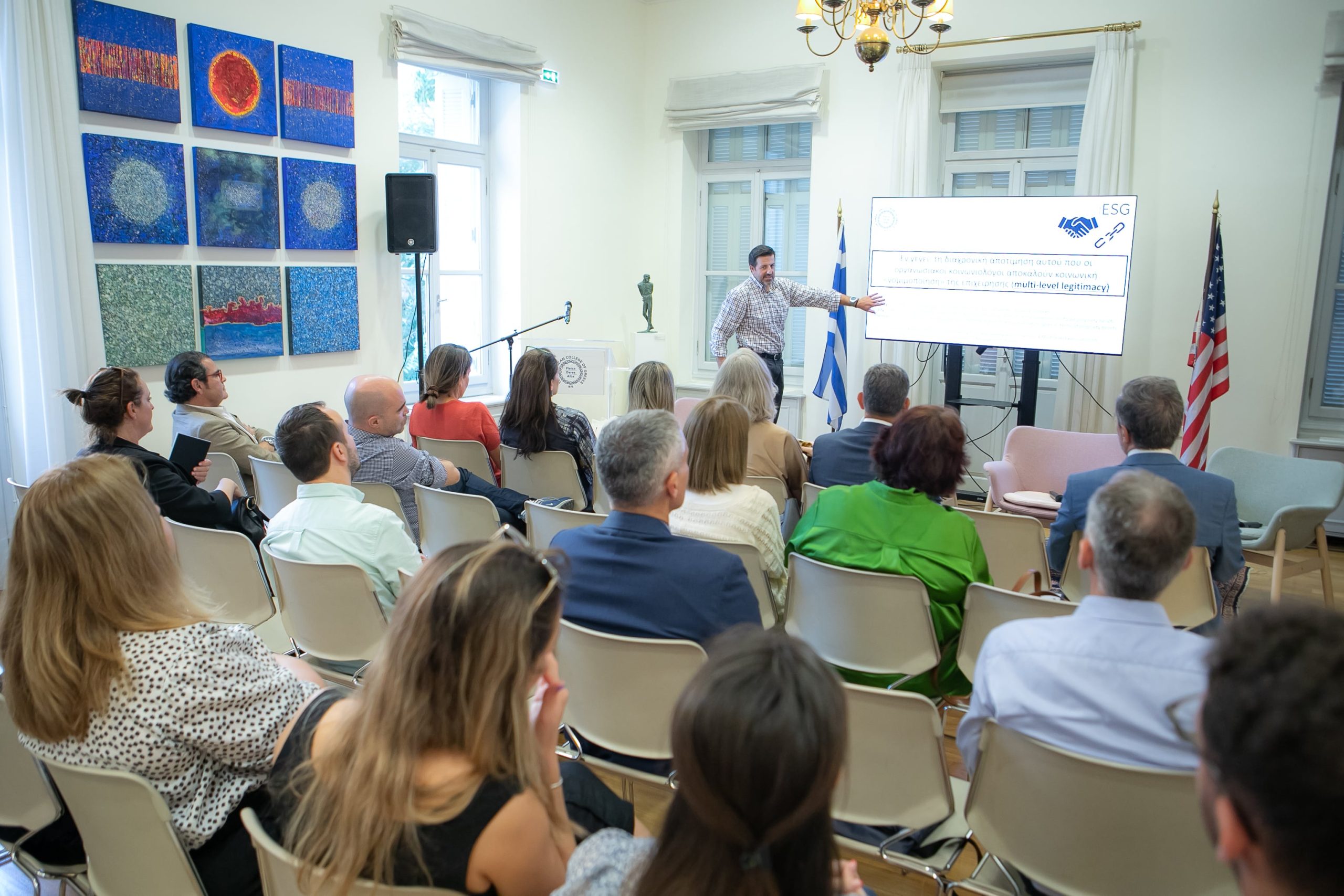 The event also featured a panel discussion titled “ESG: What’s Next for Greek Businesses and Public Policy?” moderated by Dr. Stella Apostolaki, Executive Director of the Center of Excellence for Sustainability at ACG, Assistant Professor and Program Coordinator of Environmental Studies at the Department of Science and Mathematics at The American College of Greece. Panelists included Fotini Patrikiou, Deputy Director at the Climate Change and Sustainability Center, Bank of Greece; Diana Georgakopoulou, General Director of the SEV Council for Sustainable Development; and Alexandros Katsiampoulas, ESG Performance Director at TITAN Group and Vice President of the Board of CSR Hellas.