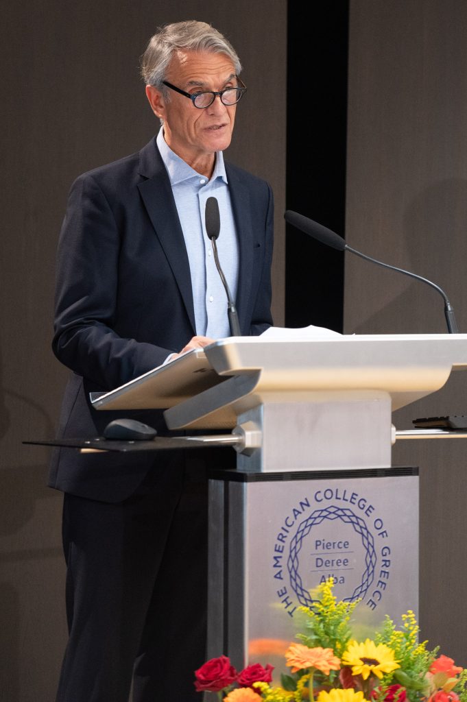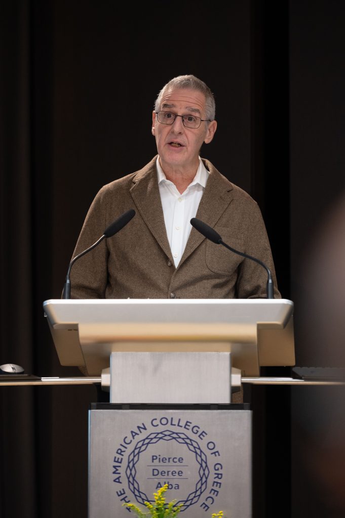 On Thursday, November 13, 2025, The American College of Greece welcomed distinguished historian Mark A. Mazower, Ira D. Wallach Professor of History at Columbia University, as the keynote speaker for the latest installment of the Eleftherios Venizelos Chair Lecturer Series. His lecture titled “After the Postwar World: Anniversaries, Generations and the Memory of 1945,” took place at the ACG Events Hall and was organized by the Institute for Hellenic Culture and the Liberal Arts (IHCLA).