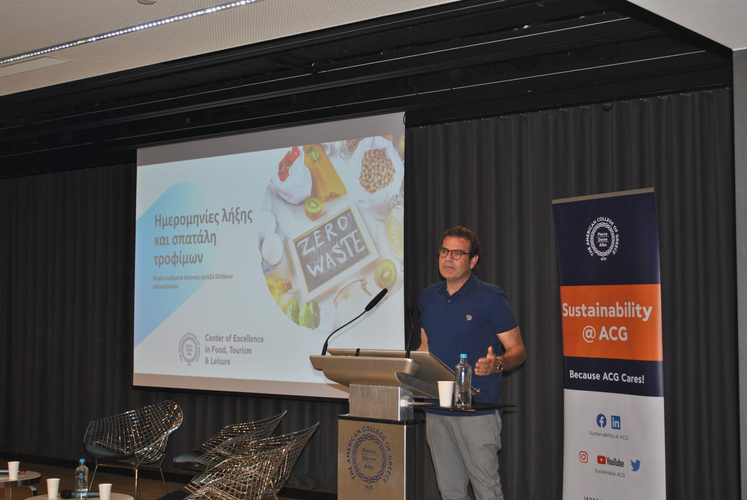 During this event, esteemed professionals from different sectors shared their knowledge, experience and tips with the audience, pointing out the ways of contributing to the elimination of food waste. The panel was composed of Dia Chorafa, Boroume, Coordinator of the Alliance for the Reduction of food waste in Greece; Rania Assariotaki, Senior Manager for Sustainability, The American College of Greece; Effie Petropoulou, In-store IFB Manager, IKEA Greece; Aggeliki Goude, Marketing Specialist in Sustainability, IKEA Greece; Konstantinos Karakatsanis, Gelato artist, Django Gelato; Dimitris Skarmoutsos, Executive Chef, and moderated by two Deree parallel students, Eva Papanikolaki and Despoina Chatzakou.