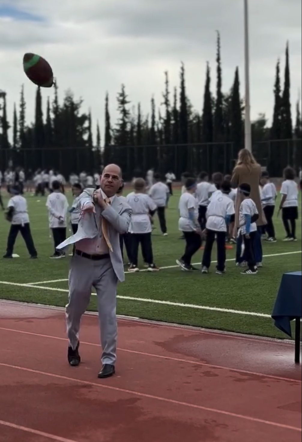 During the event, ACG President Dr. Edward Wingenbach welcomed the development program and joined students on the field, enjoying an informal exchange of ball throws with guests and Pierce students – an interaction that reflected the strong sense of community, accessibility, and shared enthusiasm that characterizes The American College of Greece. The General Secretary of Sports, Mr. Georgios Mavrotas, also attended the event, offering welcome remarks and expressing support for the initiative.
