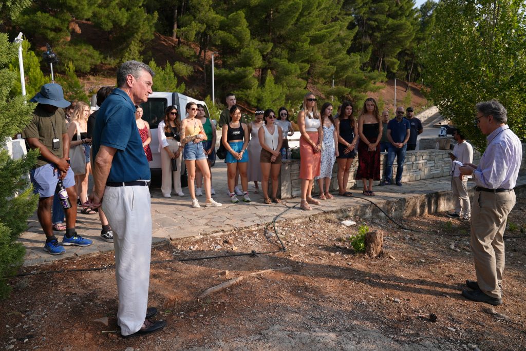 On Wednesday, July 12, at 6:30 PM, University of Washington students who are currently attending ACG as part of a faculty-led program gathered at the ACG open-air theater for a poignant tree-planting ceremony to honor all children who have tragically lost their lives to Covid, migration, human negligence, famine, war, hunger and want. The students organized this poignant ceremony under the guidance of Dr. Taso G. Lagos, Interim Director of the Executive Masters of International Studies at the Henry M. Jackson School of International Studies, University of Washington.