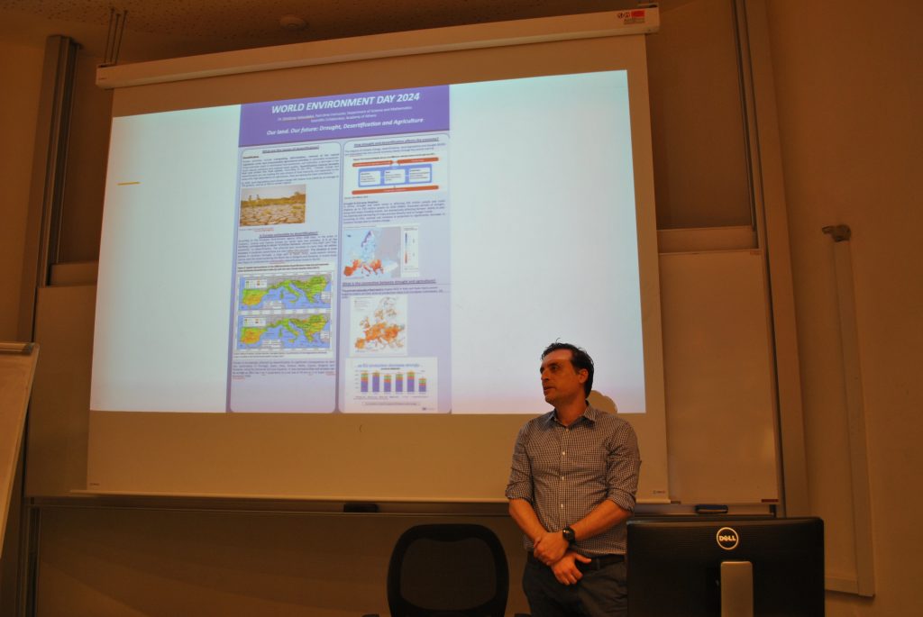 In recognition of these alarming statistics, we at The American College of Greece celebrated World Environment Day with expert talks and open discussions on Wednesday, June 12, at the Arts Center Auditorium. Dr. Stella Apostolaki, Assistant Professor in the Department of Science and Mathematics & Executive Director of the Center of Excellence in Sustainability at ACG, set the tone with her keynote on “Climate Change as a Main Driver of Drought and Desertification: Land Restoration and Resilience.” Dr. Ioannis Kougkoulos, Assistant Professor in the Department of Science and Mathematics at ACG, presented “GIS Mapping of Drought and Desertification” and finally, Dr. Dimitrios Voloudakis, Part-time Instructor in the Department of Science and Mathematics at ACG and Scientific Collaborator at the Academy of Athens, discussed the impact of climate change, drought, and desertification on agriculture.