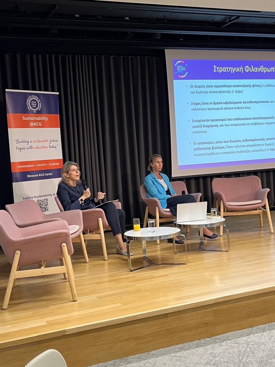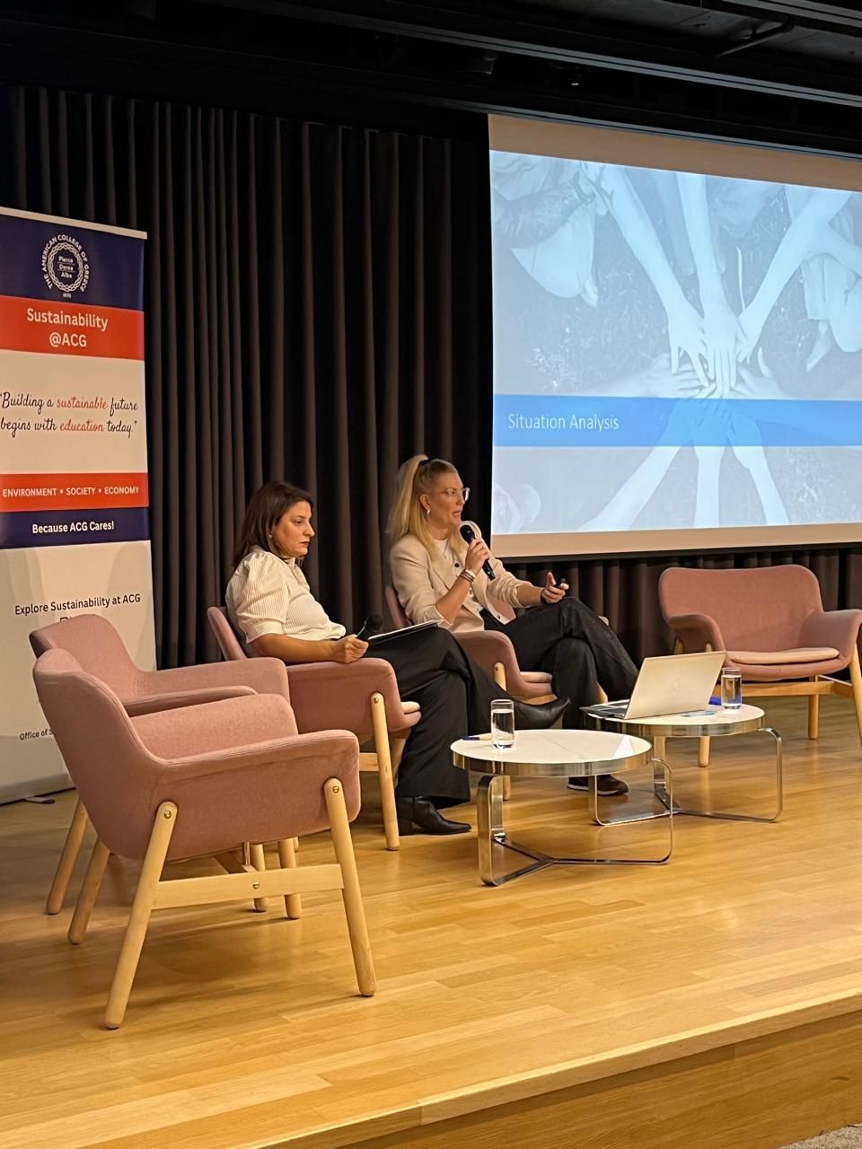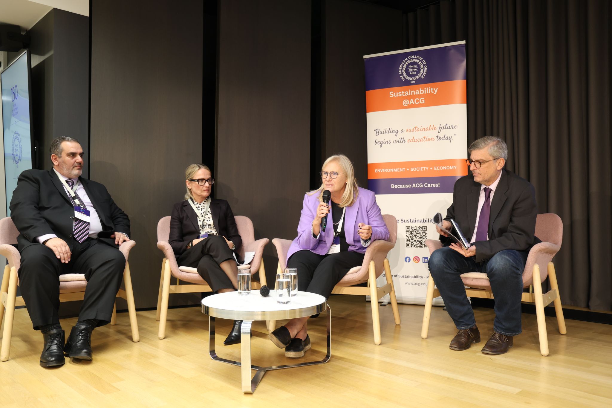 Rania Assariotaki, Director, Office of Sustainability – Public Affairs, ACG, contributed to the reflection workshop and roundtable discussion by highlighting the role of higher education institutions in advancing sustainability leadership and social impact.