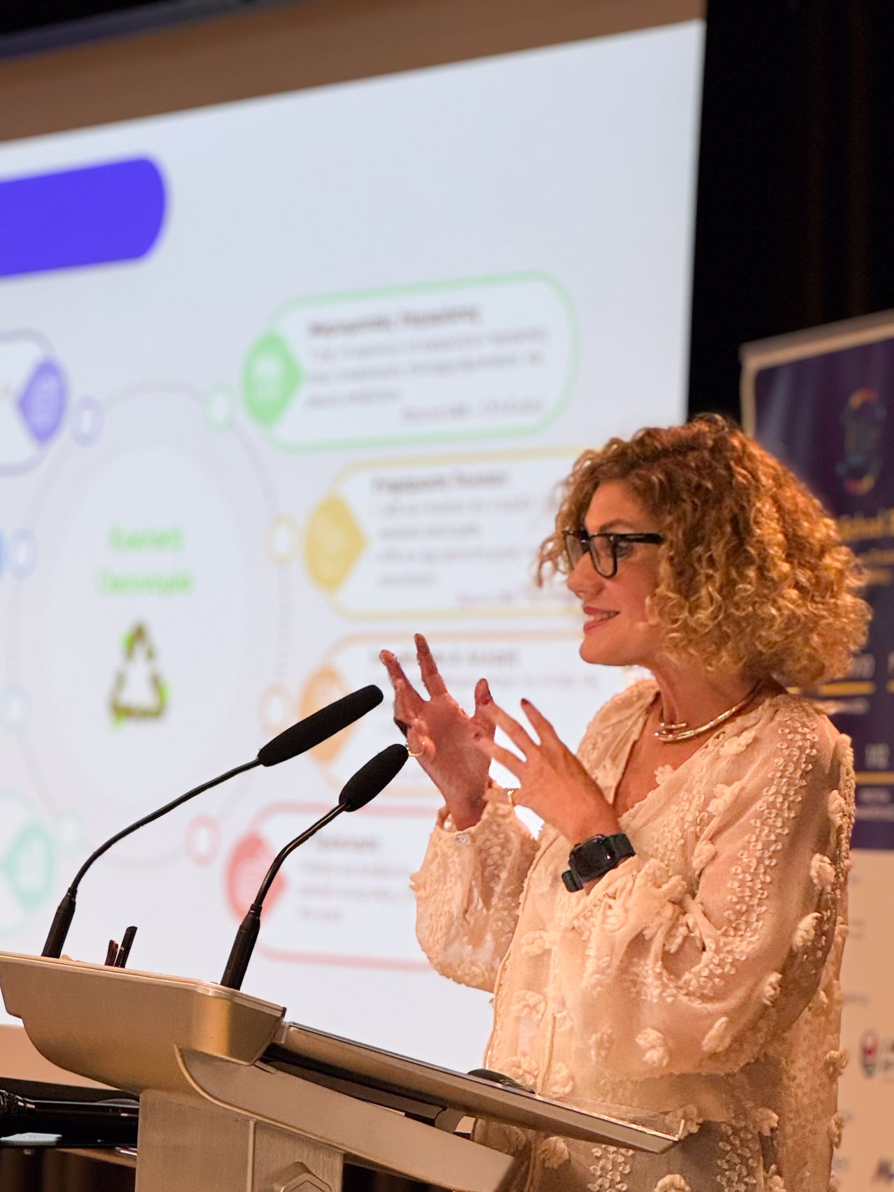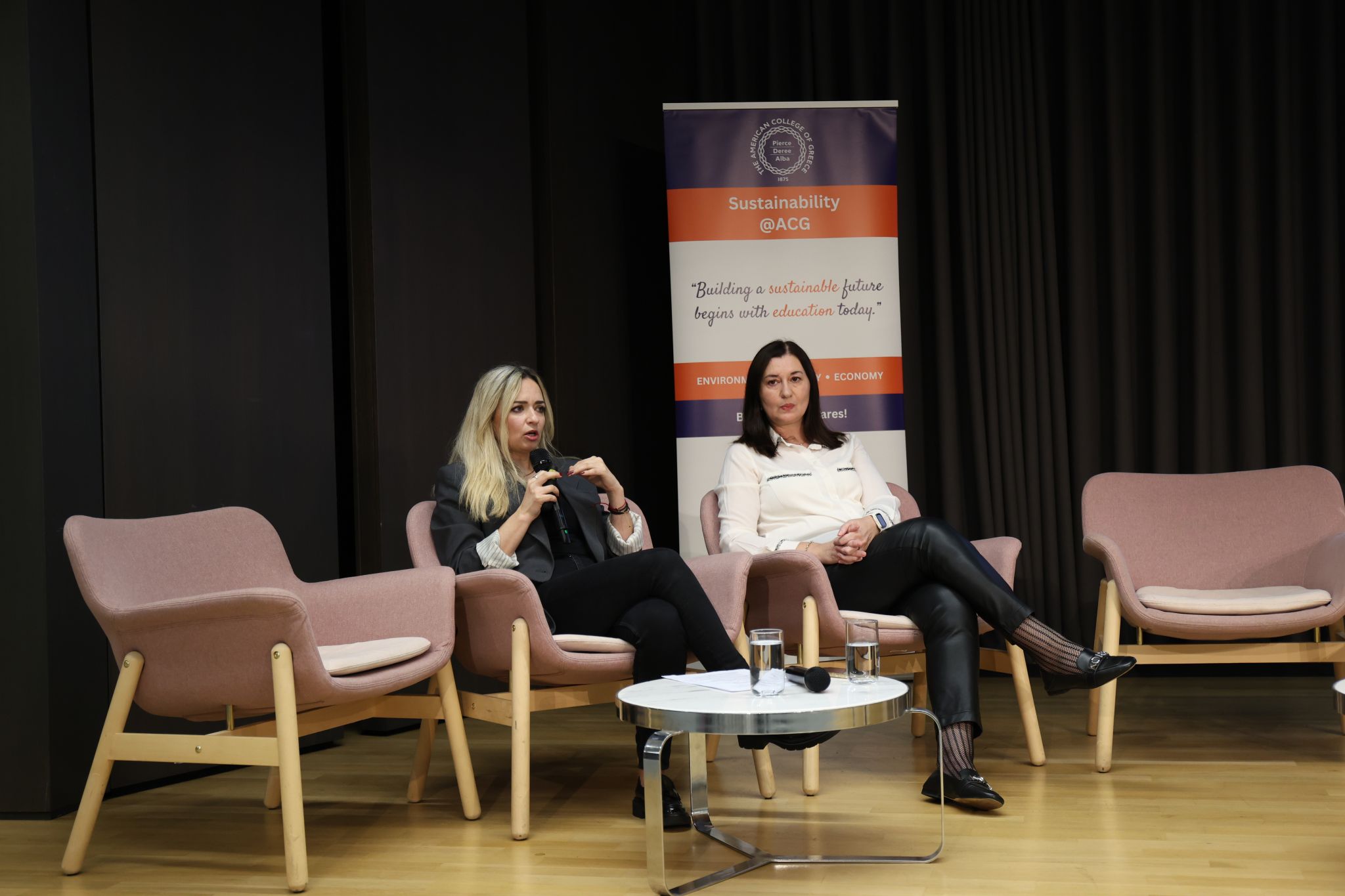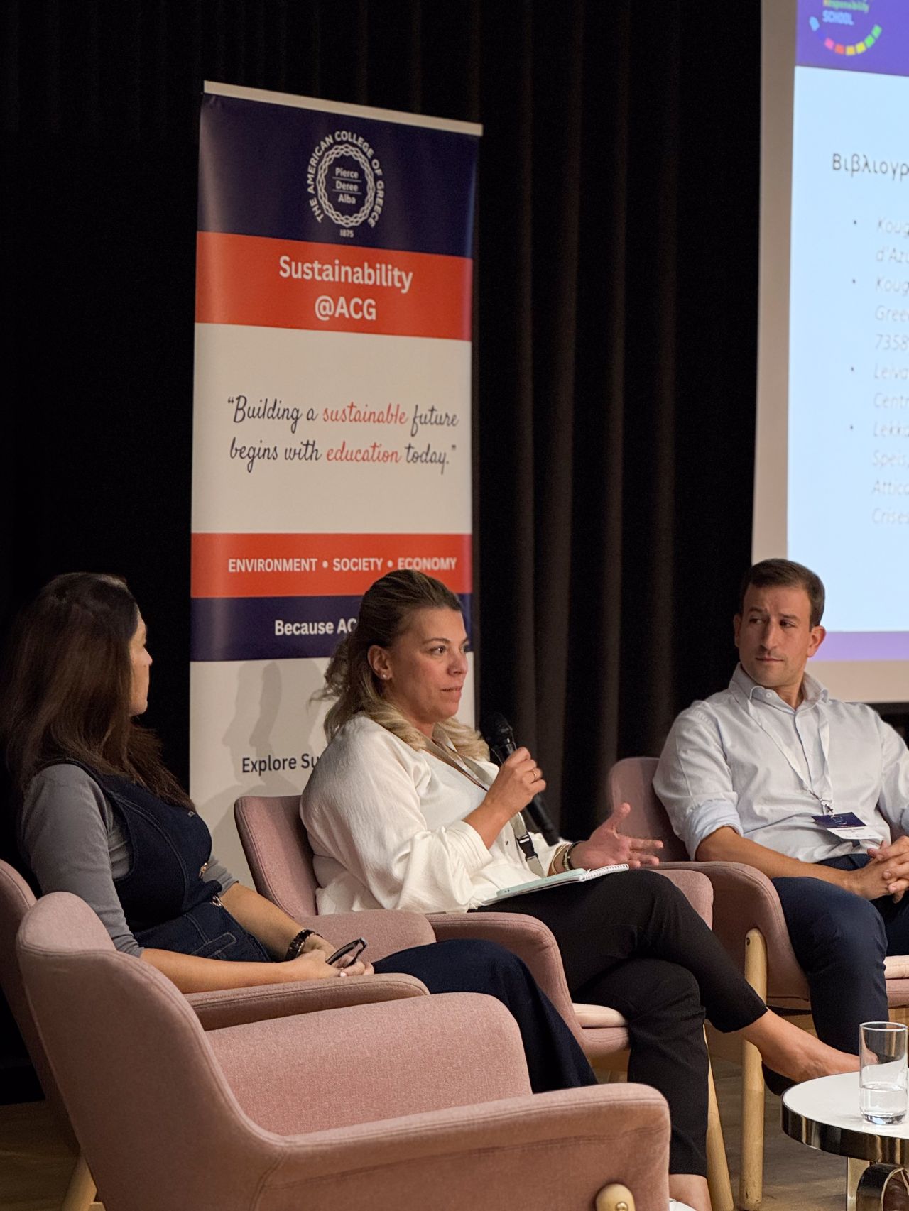 - Stella Apostolakis, Executive Director, Center of Excellence in Sustainability & Assistant Professor of Environmental Science, ACG, delivering a major presentation on biodiversity and business resilience, highlighting how nature shapes sustainable business models.