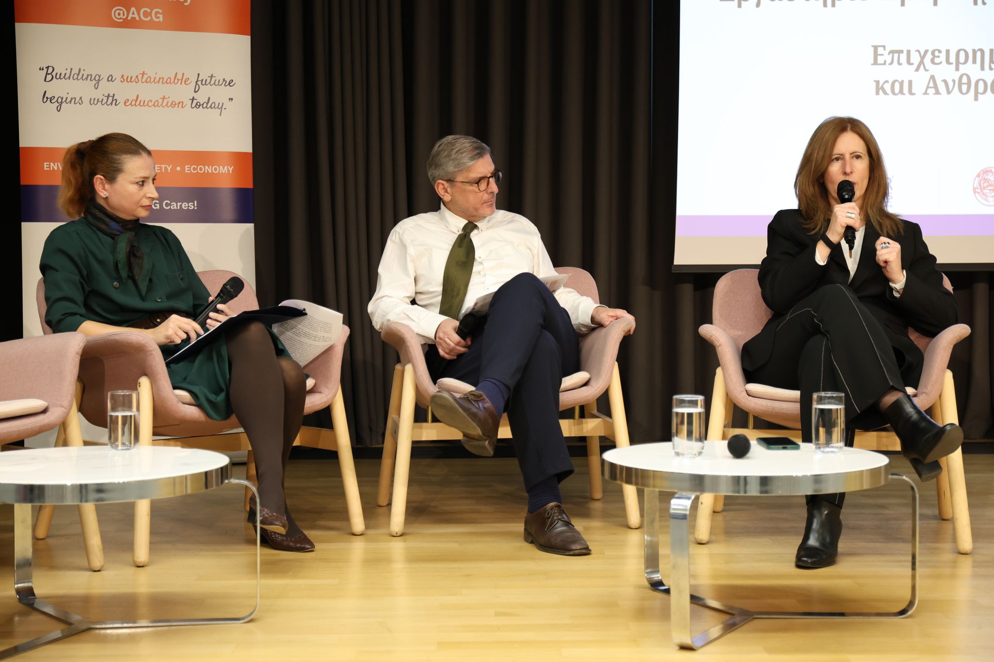 On the opening day, Alexandra Palli Giannakopoulos, Chair, CSR Hellas, Claudia Carydis, Vice President of Public Affairs, The American College of Greece, Stellina Siarapi, Secretary General for Private Investments, Ministry of Development, and Ioannis Bratakos, President, EBEA – ACCI, warmly welcomed all participants.