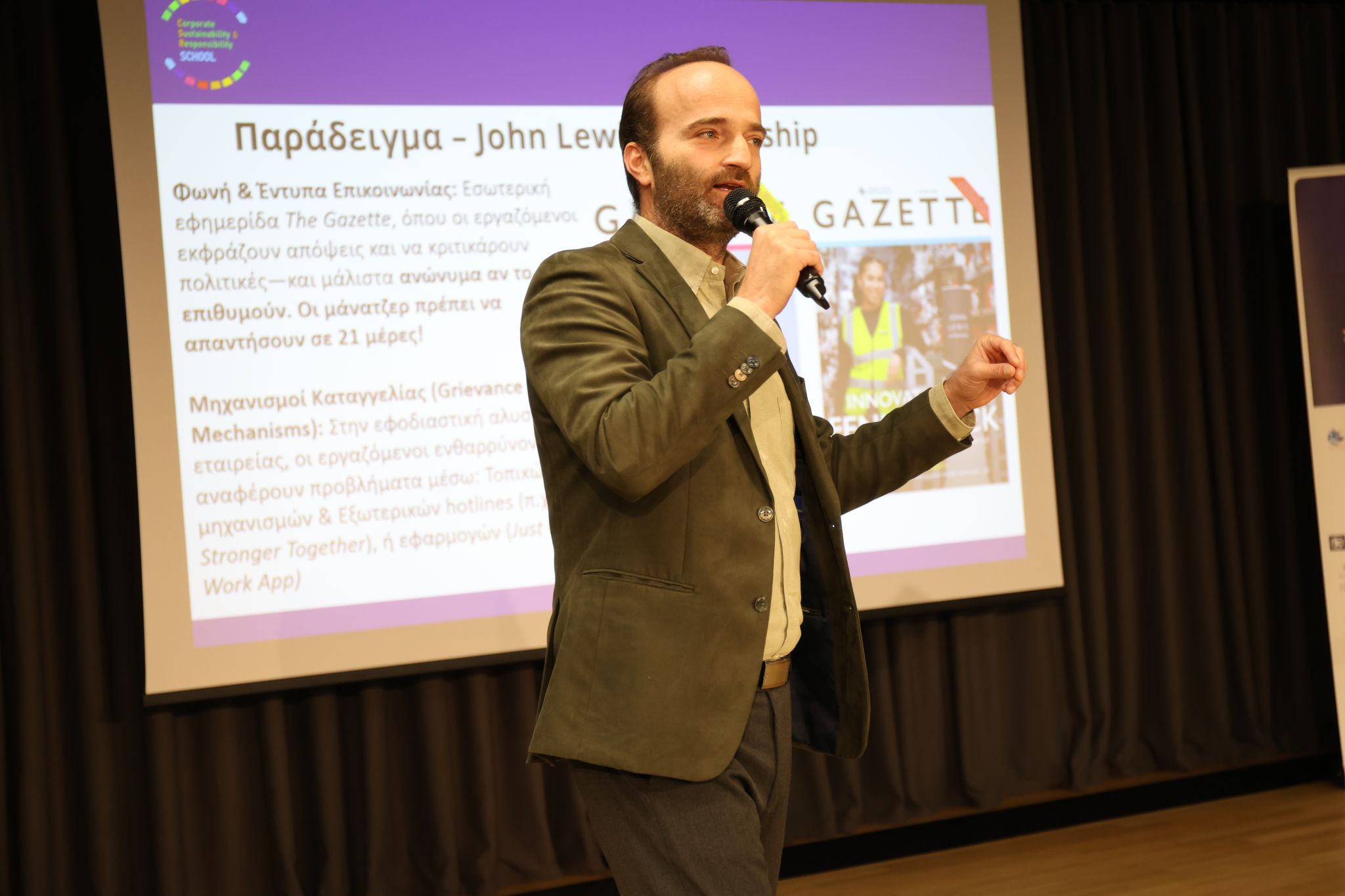 - Konstantinos Tasoulis, Professor of Human Resource Management, Deree, highlighted HR’s strategic role in sustainable development.