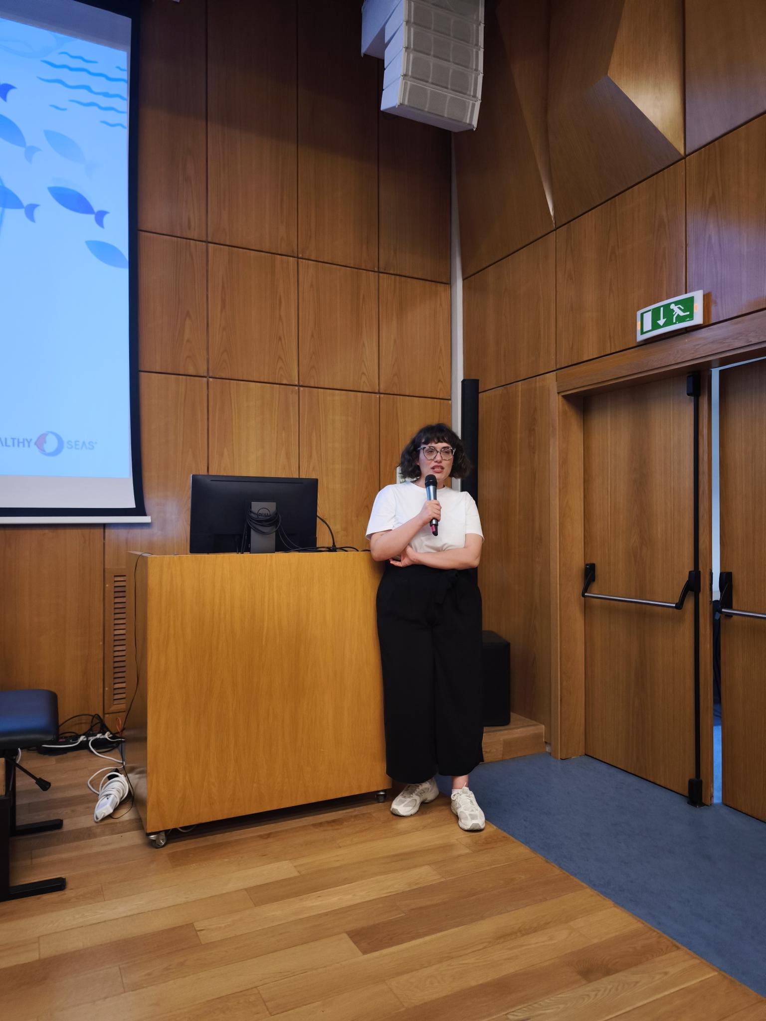 Ms. Zantioti also spotlighted Healthy Seas’ work in Greece, including major marine cleanups and their larger-scale initiative, “Ghost Farms: Reclaiming Waters,” a project that aims to map abandoned fish farms, clean up the areas, and restore the waters, in alignment with UN Sustainable Development Goal 14: Life Below Water.